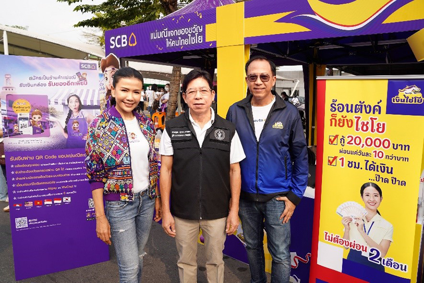 นอกจากนี้ เพื่อให้พ่อค้าแม่ค้าตลาดนัดจตุจักรได้ร้อง “ไชโย” อีกครั้ง ธนาคารไทยพาณิชย์จึงได้ผนึกกำลัง “ออโต้ เอกซ์” บริษัทในกลุ่มเอสบีซี เอกซ์ นำบริการ “เงินไชโย” สินเชื่อจำนำทะเบียนและวงเงินพร้อมใช้ มาช่วยปลดล็อกความเครียดจากภาระทางการเงิน ด้วยจุดเด่นที่ให้ลูกค้าได้เงินเต็มวงเงินที่ได้รับการอนุมัติ อนุมัติไว ได้เงินภายใน 1 ชั่วโมง แถมประกันฟรีในทุกสัญญา และ “บัตรเงินไชโย” จ่ายเงินต้นไปเท่าไร สามารถกดเงินใช้เพิ่มได้เท่านั้น ไม่มีค่าธรรมเนียม ค่างวดเท่าเดิม ไม่ต้องขออนุมัติใหม่