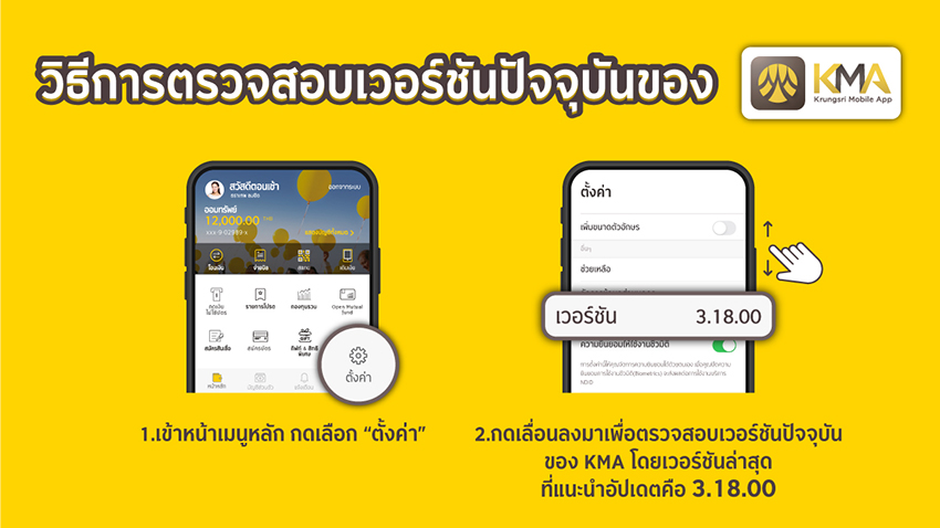 ทั้งนี้ KMA เวอร์ชันล่าสุด (version 3.18.00) ได้มีการพัฒนาระบบป้องกันแอปพลิเคชันต้องสงสัยที่มีการเปิดใช้บริการ Accessibility Service ดังกล่าว โดยเมื่อทำการเข้าสู่ระบบเพื่อใช้งาน KMA ระบบจะทำการตรวจเช็กแอปพลิเคชันต่างๆ บนมือถือ และหากตรวจพบแอปพลิเคชันต้องสงสัย ระบบจะไม่อนุญาตให้เข้าใช้งาน KMA และจะแจ้งเตือนผู้ใช้งานทันที โดยผู้ใช้งานสามารถตรวจสอบเวอร์ชันที่ใช้งานอยู่ได้ตามขั้นตอนดังนี้