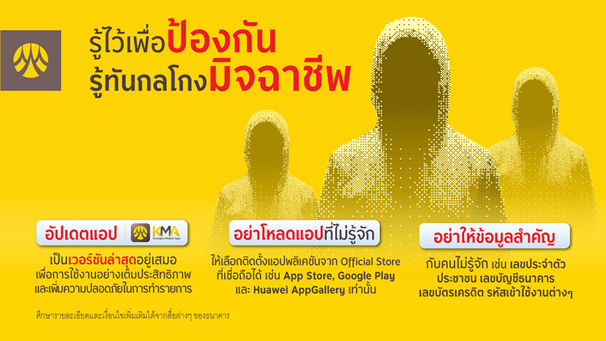 อย่างไรก็ตาม เพื่อความปลอดภัยสูงสุดของผู้ใช้งาน กรุงศรี แนะนำให้ผู้ใช้งาน KMA – Krungsri Mobile App ปฏิบัติดังนี้