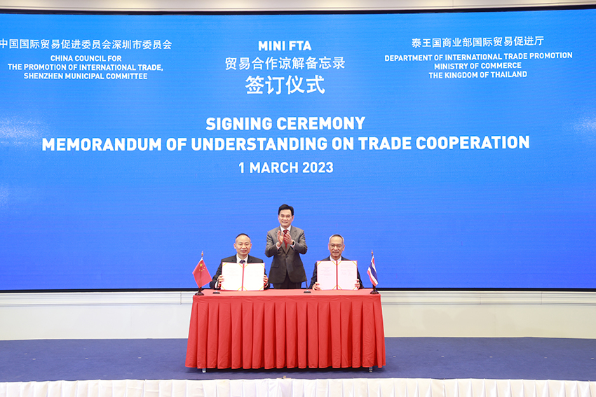 โดยภายในงานเป็นการลงนามระหว่างอธิบดีกรมส่งเสริมการค้าระหว่างประเทศ(นายภูสติ รัตนกุล เสรีเริงฤทธิ์) กับประธานสภาส่งเสริมการค้าระหว่างประเทศ แห่งชาติจีน คณะกรรมการเทศบาลเมืองเซินเจิ้น สาธารณรัฐประชาชนจีน(นายกู้ ตงจง) ซึ่งมีนายอลงกรณ์ พลบุตร ที่ปรึกษารัฐมนตรีว่าการกระทรวงเกษตรและสหกรณ์ นายกีรติ รัชโน ปลัดกระทรวงพาณิชย์ ผู้บริหารกระทรวงพาณิชย์ และตัวแทนภาครัฐและเอกชนทั้งไทยและจีนให้ความสนใจเข้าร่วมเป็นจำนวนมาก
