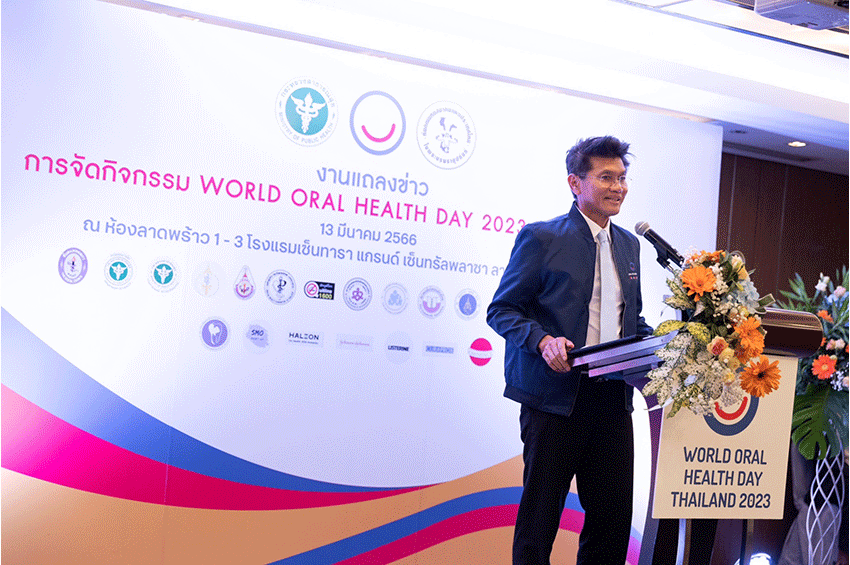 ทันตแพทย์ อดิเรก ศรีวัฒนาวงษา นายกทันตแพทยสมาคมแห่งประเทศไทย ในพระบรมราชูปถัมภ์ กล่าวถึงการจัดกิจกรรมครั้งนี้ว่า ทันตแพทยสมาคมแห่งประเทศไทยฯ ในฐานะหน่วยงานเดียวในประเทศไทยที่เป็นสมาชิกโดยตรงของสมาพันธ์ทันตแพทย์โลก ได้เห็นถึงความสำคัญในการสร้างเสริมสุขภาพช่องปากของคนไทย จึงอาสาเป็นตัวกลางในการประสานงาน และเชิญชวนองค์กรภาคีทั้งหน่วยงานรัฐและเอกชน ร่วมกันจัดกิจกรรมในครั้งนี้ โดยได้รับความร่วมมือจากหน่วยงานต่างๆ ทั้งที่เป็นหน่วยงานด้านนโยบาย ด้านการรักษา ด้านการให้บริการ สถาบันการศึกษา ตลอดจนผู้ผลิตและจำหน่ายสินค้าที่เกี่ยวข้องกับการดูแลสุขภาพช่องปาก รวมมากกว่า 27 หน่วยงาน มารณรงค์พร้อมกันในวันที่ 20 มีนาคม 2566 ผ่านช่องทางและกิจกรรมที่หลากหลาย ซึ่งถือเป็นครั้งแรกของประเทศไทยที่จะร่วมจัดงาน World Oral Heath Day พร้อมกับประเทศอื่นๆ ทั่วโลก ภายใต้คำขวัญ ‘Be Proud of Your Mouth’ และ ‘Take Care of Your Oral Health for a Lifetime of Smiles’ ซึ่งเป็นคำขวัญที่ใช้ร่วมรณรงค์พร้อมกันทั่วโลกในปีนี้