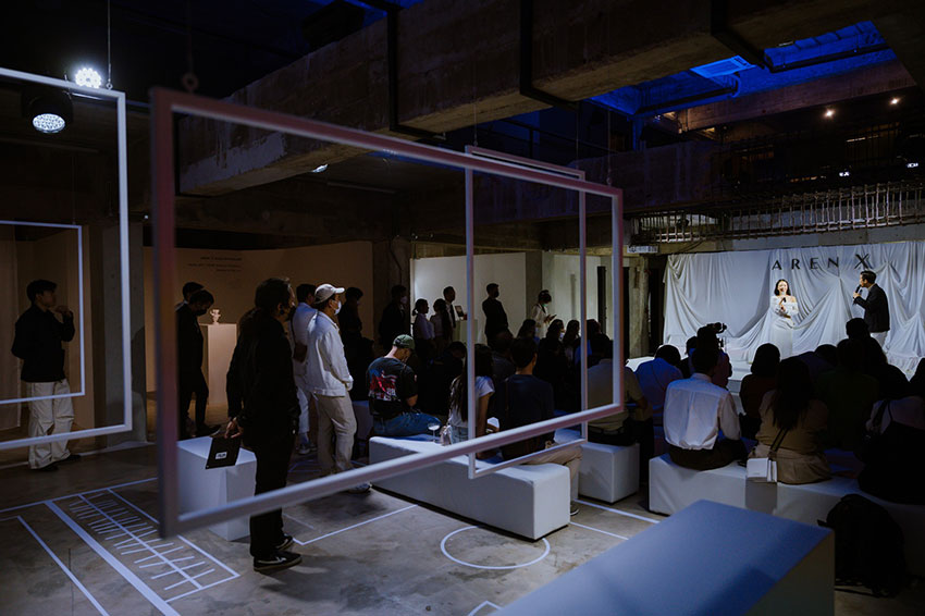 ผลงาน “เสียง” ที่มอบประสบการณ์ซาวด์ที่ไร้ขีดจำกัด โดยได้ DJ สุดชิคอย่าง ไปป์ - ธวิศรุต หรือ DJ Supersonic ที่มาครีเอท ‘เพลย์ลิสต์’ แบบ Uncompromised ด้วยเสียงเพลงที่ต่อเนื่อง และเชื่อมต่อความรู้สึกของทุกคนได้อย่างลงตัว และสุดท้ายกับ ผลงาน “สัมผัส” จาก เดือนระวี อินทรเกิด ดีไซเนอร์จากแบรนด์รองเท้าชื่อดังอย่าง London Brown ที่ได้ดีไซน์รองเท้า Handmade ที่ออกแบบมาพิเศษสำหรับโครงการ AREN X และนิทรรศการครั้งนี้โดยเฉพาะ ซึ่งเป็นรองเท้าที่มีดีไซน์เรียบแต่สะดุดสายตา สามารถสวมใส่ได้ทั้งในบ้าน และนอกบ้าน