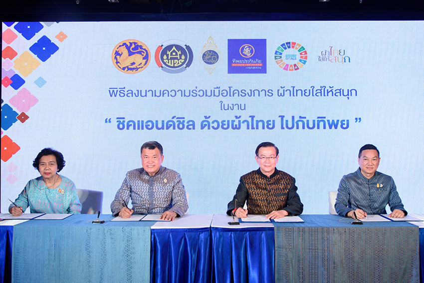 ดร.สมพร สืบถวิลกุล ประธานเจ้าหน้าที่บริหาร บมจ. ทิพย กรุ๊ป โฮลดิ้งส์ และกรรมการผู้จัดการใหญ่ บมจ.ทิพยประกันภัย กล่าวว่า เพื่อเป็นการสืบสานพระราชปณิธานและเฉลิมพระเกียรติ 90 พรรษา สมเด็จพระนางเจ้าสิริกิติ์ พระบรมราชินีนาถ พระบรมราชชนนี พันปีหลวง ในการอนุรักษ์มรดกภูมิปัญญาการทอผ้า และสนองพระดำริของ สมเด็จพระเจ้าลูกเธอ เจ้าฟ้าสิริวัณณวรี นารีรัตนราชกัญญา ทิพยประกันภัย ได้ลงนามบันทึกข้อตกลง (MOU) ร่วมกับ กระทรวงมหาดไทย กรมการพัฒนาชุมชน สมาคมแม่บ้านมหาดไทย พร้อมจัดงาน “ชิคแอนด์ชิล ด้วยผ้าไทย ไปกับทิพย” ภายใต้โครงการ “ผ้าไทยใส่ให้สนุก” เพื่อร่วมอนุรักษ์ ส่งเสริม สืบสาน รักษา และต่อยอด มรดกภูมิปัญญาของบรรพบุรุษไทย สร้างงาน สร้างอาชีพ สร้างรายได้พัฒนาคุณภาพชีวิตของคนไทยอย่างยั่งยืน ผ่านการเชิญชวนผู้บริหารและพนักงานทุกสาขาทั่วประเทศสวมใส่ผ้าไทยในวันทำงาน ทุกวันพฤหัสบดีตลอดปี โดยเริ่มตั้งแต่วันที่ 23 มีนาคม 2566 เป็นต้นไป