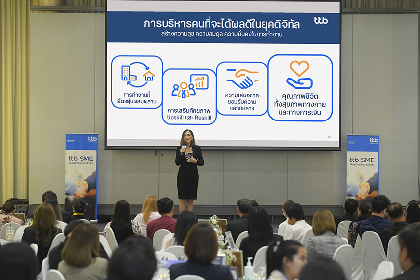- การวางแผนจัดการบุคลากรให้มีคุณภาพ พร้อมโซลูชันทางการเงินที่ช่วยยกระดับการบริหารธุรกิจครบวงจรสำหรับเอสเอ็มอีโดยเฉพาะ โดยมีการชี้ให้เห็นถึงความสำคัญของการดูแลพนักงานซึ่งเป็นปัจจัยหลักที่ทำให้บริษัทเติบโตได้อย่างยั่งยืน ซึ่งการบริหารทรัพยากรบุคคลที่ถูกใจทั้งพนักงานและองค์กรนั้น ต้องใส่ใจในการสร้างคุณภาพชีวิตที่ดีในทุกด้านให้กับพนักงาน รวมถึงสุขภาพชีวิตทางการเงินที่ดี ซึ่งสามารถดูแลผ่านโซลูชันทางการเงิน ttb payroll plus บริการจ่ายเงินเดือน และดูแลสวัสดิการพนักงานครบจบในที่เดียว ที่จะเป็นตัวช่วยเอสเอ็มอี ได้เป็นอย่างดี เพราะนอกจากจ่ายเงินเดือนได้สะดวกแล้ว ยังได้รับสวัสดิการสำหรับพนักงานเพิ่ม ทั้งประกันสุขภาพและอุบัติเหตุในต้นทุนที่ต่ำ นอกจากนี้ยังสามารถจ่ายเงินเดือนผ่านระบบอินเทอร์เน็ตแบงก์กิ้ง ซึ่งเพิ่มความคล่องตัวในการบริการจัดการเงินเดือนให้กับผู้ประกอบการอีกด้วย