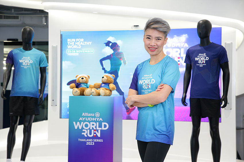 นาวสาวพัชรา ทวีชัยวัฒนะ รองกรรมการผู้จัดการใหญ่สายงานบริหารงานลูกค้า บมจ.อลิอันซ์ อยุธยา ประกันชีวิต กล่าวว่า การจัดงาน “Allianz Ayudhya World Run Thailand Series 2023” เป็นกิจกรรมที่บริษัทฯเป็นเจ้าภาพจัดต่อเนื่องมายาวนาน การจัดงานมีทั้งแบบ Virtual Run (เวอร์ชวล รัน) และField Run โดยในซีรี่ส์แรกจะเป็นการเก็บระยะทางแบบเวอร์ชวลรัน โดยให้พนักงาน ตัวแทน ร่วมวิ่งเก็บระยะ ให้กับทีม One Thailand แข่งกับกลุ่มอลิอันซ์จากทั่วโลก เพื่อชิงเงินรางวัล 20,000 ยูโร เพื่อนำไปบริจาคให้กับมูลนิธิในไทย และในซีรี่ส์ที่สองเป็นการวิ่งแบบฟิลด์รัน ซึ่งเป็นงานวิ่งที่แฟนๆ Allianz World Run ทุกคนรอคอย โดยทีมงานเอง มีการคัดสรรเส้นทางที่สวยงาม โอบล้อมไปด้วยธรรมชาติ วิ่งสนุก ในเส้นทางธรรมชาติที่มีอากาศดี วิวสวย และเป็นมิตรกับสิ่งแวดล้อม มีส่วนร่วมจากชุมชน ปีนี้ได้เปลี่ยนบรรยากาศจากภูเขามาเป็นวิ่งฟังเสียงคลื่น รับแสงแดดยามเช้า ในพื้นที่ปากน้ำปราณ จังหวัดประจวบคีรีขันธ์