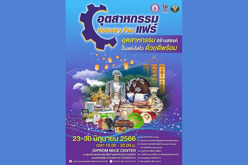 จึงขอเชิญชวนทุกท่านร่วมช้อปสินค้า ชมเทคโนโลยี ชิมอาหารอร่อย พร้อมแวะเยี่ยมชมผลิตภัณฑ์สินค้าสิ่งทอไทยภายใต้ ฉลากคุณภาพผลิตภัณฑ์สิ่งทอไทย ได้ภายในงาน ระหว่างวันที่ 23 – 30 มิถุนายน 2566 ณ ศูนย์ประชุมและแสดงสินค้าอุตสาหกรรมภาคเหนือ จังหวัดลำปาง