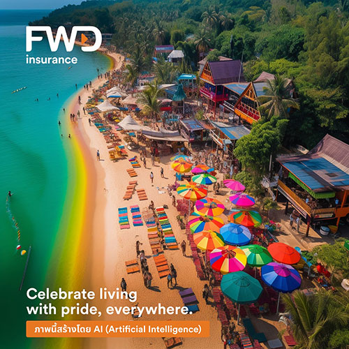 FWD ประกันชีวิต สร้างสรรค์การสื่อสารแบรนด์ด้วยความแตกต่างอย่างต่อเนื่อง ใช้เทคโนโลยี AI เป็นเจ้าแรกของวงการประกันชีวิต ต่อยอดกับแคมเปญ Celebrate living with Pride, everywhere ร่วมฉลอง Pride Month สร้างคอนเทนต์ซีรีส์ ไม่ว่าจะอยู่ที่ไหนในไทย ก็จัดงานฉลอง Celebrate Pride Month ได้ทุกที่ โดยมี FWD ประกันชีวิต สนับสนุนให้ทุกคนใช้ชีวิตได้ในแบบที่ต้องการ