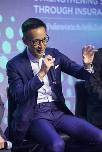 ด้านนายสาระ ล่ำซำ นายกสมาคมประกันชีวิตไทย กล่าวว่า ปัจจุบันประชาชนเห็นประโยชน์ของการประกันภัยมากขึ้นและการพัฒนาผลิตภัณฑ์ประกันภัยของบริษัทประกันภัยจะต้องตรงกับความต้องการของลูกค้า ซึ่งต้องประยุกต์ใช้ข้อมูลให้เป็นไปตามกฎหมายและใช้การประกันภัยเป็นเครื่องมือในการบริหารความเสี่ยง โดยบริษัทประกันภัยได้พัฒนาผลิตภัณฑ์ประกันภัยเพื่อตอบสนองความต้องการของผู้บริโภคอย่างต่อเนื่อง และดำเนินธุรกิจโดยคำนึงถึง ESG สำหรับประชาชนที่เข้ามาในงาน Thailand InsurTech Fair 2023 จะได้รับประโยชน์มากมาย โดยสามารถเลือกซื้อผลิตภัณฑ์ประกันชีวิต ประกันภัยสุขภาพและประกันชีวิตแบบบำนาญ ตลอดจนผลิตภัณฑ์ประกันชีวิตอื่น ๆ และผลิตภัณฑ์ประกันวินาศภัย ซึ่งปัจจุบันประเทศไทยเข้าสู่สังคมผู้สูงอายุแล้ว จึงเป็นโอกาสที่ดีของคู่ค้า ที่จะมาพบปะแลกเปลี่ยนเทคโนโลยีประกันภัยเพื่อให้บริษัทประกันภัยสามารถตอบโจทย์ของลูกค้าได้ดียิ่งขึ้น ซึ่งงานนี้เป็นการบูรณาการการทำงานร่วมกันระหว่างหน่วยงานกำกับดูแล บริษัทประกันชีวิต บริษัทประกันวินาศภัย นายหน้าประกันภัย ตัวแทนประกันภัย และหน่วยงานที่เกี่ยวข้อง โดยประชาชนที่มาในงานจะได้รับประโยชน์สูงสุดและสนองตอบความต้องการของทุกภาคส่วน