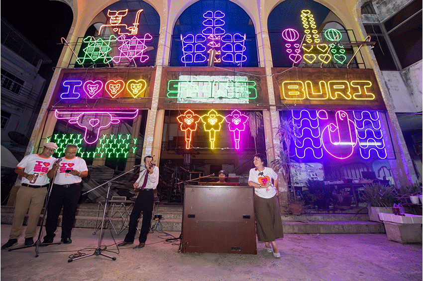ไฮไลท์แรก มาที่ เมืองทองรามา” หรือชื่อเดิม “คู่รักรามา” โรงหนังเครือสกาลาแห่งสุดท้ายที่เหลืออยู่ในไทย เคยเป็นโรงหนังที่โก้และใหญ่ที่สุดในเส้นทางสายเหนือ เมืองทองรามาจะกลับมามีชีวิตชีวาอีกครั้งด้วย Neon Light Art งานศิลปะแสงไฟสุดปัง! ความพิเศษของการประดับไฟ Neon Light Art นอกจากจะมาปลุกอาคารเก่าแก่ที่มีเสน่ห์ในยามค่ำคืนให้สว่างไสวด้วยงานแสงสีอาร์ตๆ ยังโดดเด่นด้วยการนำสัญลักษณ์ของ จ.สิงห์บุรี มาออกแบบใหม่ให้มีความร่วมสมัย (Pop Art) เพื่อให้ทุกคนได้เดินชมและทำความรู้จักเมืองสิงห์ไปพร้อมๆ กัน พร้อมเพลิดเพลิน ชิลล์ไปกับ เสียงประสานไวโอลินและเปียโนของลุงจรินทร์และลุงจรูญแห่งวง ‘The Improviser’ บรรเลงขึ้นโรงหนังเมืองทองรามา ถือเป็นศูนย์รวมที่วัยเก๋ามานั่งฟังดนตรีสุนทราภรณ์แกล้มด้วย ‘หมูสะดุ้ง’ เมนูยอดฮิต เปิดให้บริการตั้งแต่ปี 2521 นักดนตรีและนักร้องก็ไม่ใช่ใครที่ไหน แต่คือคุณลุงสองพี่น้องนั่นเอง ซึ่งสามารถเพลิดเพลินกับเสียงดนตรีได้ตั้งแต่เวลา 19.00-22.30 น. โดยจะเปิดรับเพียง 60 ที่นั่งต่อวันเท่านั้น
