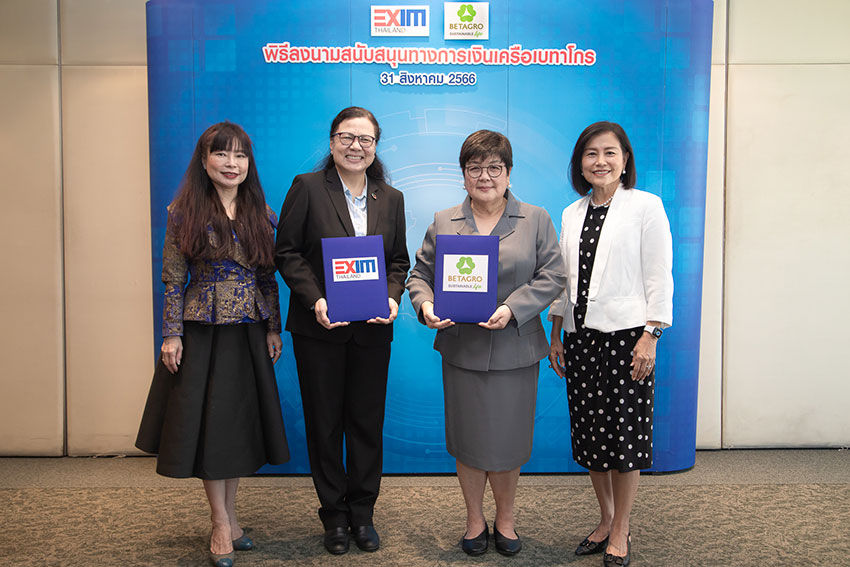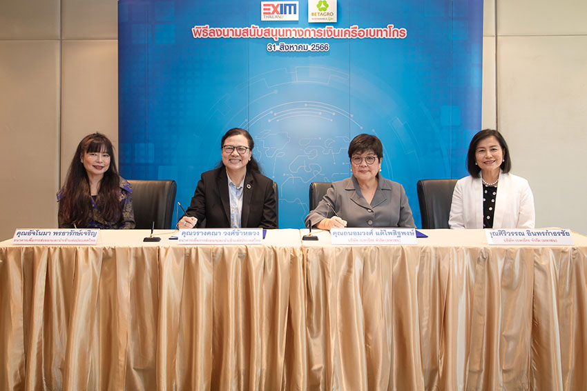 นางวรางคณา วงศ์ข้าหลวง รองกรรมการผู้จัดการ ธนาคารเพื่อการส่งออกและนําเข้าแห่งประเทศไทย (EXIM BANK) และนางสาวถนอมวงศ์ แต้ไพสิฐพงษ์ กรรมการและประธานเจ้าหน้าที่กลุ่มงานบริหารส่วนกลาง บริษัท เบทาโกร จำกัด (มหาชน) (เบทาโกร) ร่วมลงนามในสัญญาสนับสนุนทางการเงินของ EXIM BANK จํานวน 2,800 ล้านบาท เพื่อเสริมสภาพคล่องและสนับสนุนการขยายธุรกิจของเบทาโกร รองรับความต้องการของผู้บริโภคทั้งในไทยและตลาดอื่น ๆ ในภูมิภาคอาเซียน โดยมีนางศิริวรรณ อินทรกำธรชัย กรรมการและประธานเจ้าหน้าที่กลุ่มงานบริหารการเงิน เบทาโกร และนางสาวอัจโนมา พรธารักษ์เจริญ ผู้อำนวยการอาวุโส ฝ่ายกลุ่มอุตสาหกรรม 1 EXIM BANK เป็นสักขีพยาน ณ อาคารเบทาโกร ทาวเวอร์ (นอร์ธปาร์ค) กรุงเทพฯ เมื่อวันที่ 31 สิงหาคม 2566