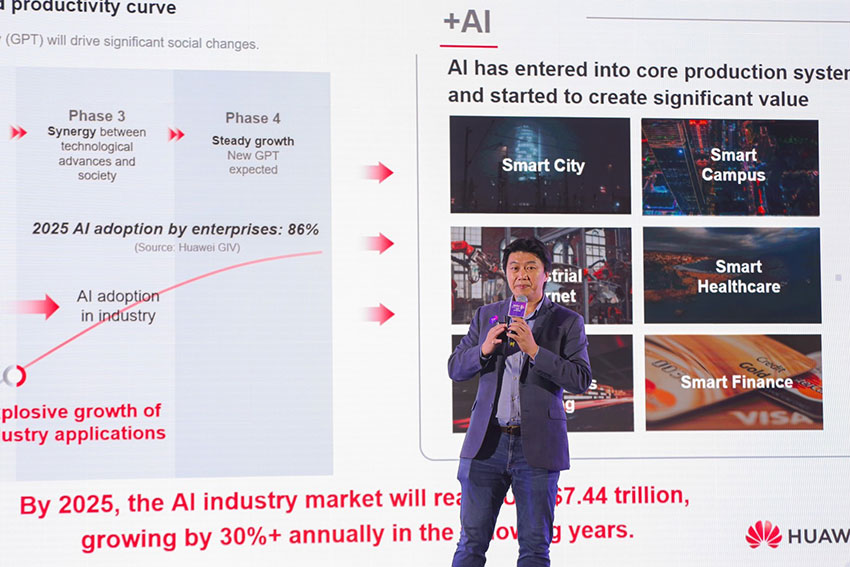 “การนำเทคโนโลยี AI มาใช้ จะประสบความสำเร็จหรือล้มเหลวนั้น ขึ้นอยู่กับความสามารถของเทคโนโลยี AI ที่นำมาใช้จะสามารถสร้างความแตกต่างอย่างชัดเจนให้กับองค์กรของได้อย่างไร ซึ่งความสามารถและความรวดเร็วของแต่ละองค์กรในการเปิดรับเทคโนโลยี AI ขึ้นอยู่กับว่าเทคโนโลยี AI นั้นสามารถใช้งานได้จริงแค่ไหน ประเทศไทยเองถือเป็นหนึ่งในประเทศที่มีแนวทางและกลยุทธ์ ที่ชัดเจนในการสนับสนุนแนวทางพัฒนาเศรษฐกิจดิจิทัลซึ่งหัวเว่ยเชื่อว่าสามารถนำเทคโนโลยี AIสร้างความแตกต่าง ที่เห็นได้จริงในหลากหลายอุตสาหกรรมของไทย อย่างไรก็ตาม การจะทำให้สำเร็จได้นั้น เทคโนโลยีพื้นฐาน ทักษะของผู้ใช้งานความสามารถในการพัฒนาเชื่อมต่อและการนำเทคโนโลยี AI มาประยุกต์ใช้ ถือเป็นปัจจัยสำคัญต่อนโยบายด้านเทคโนโลยี AI ของประเทศ”