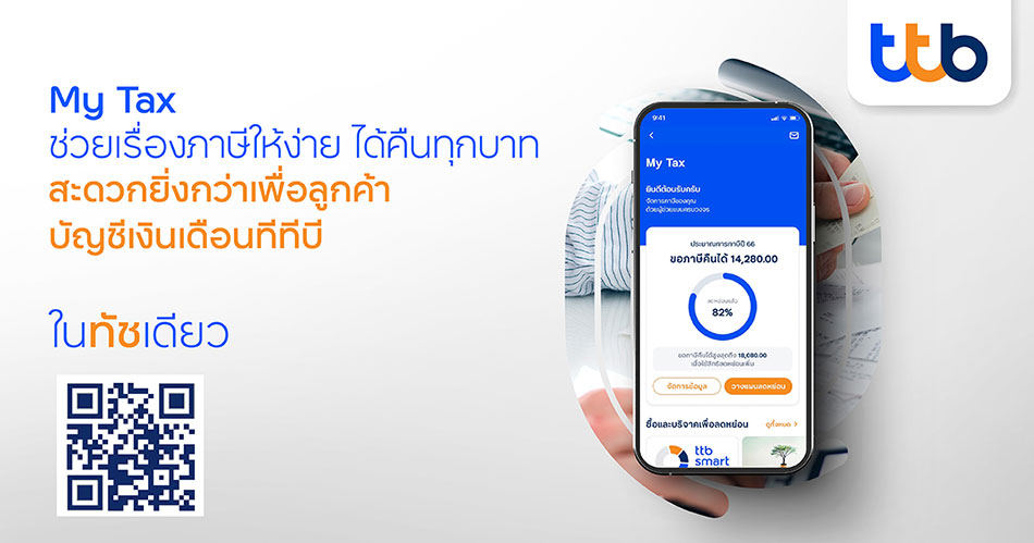 ทีเอ็มบีธนชาต หรือ ทีทีบี รุกเพิ่มสิทธิประโยชน์ให้ลูกค้าบัญชีเงินเดือน ทีทีบี เพื่อตอกย้ำความคุ้มค่าที่ได้มากกว่าบัญชีเงินเดือนทั่ว ๆ ไป และสามารถช่วยเปลี่ยนชีวิตทางการเงินของพนักงานเงินเดือนให้ดีขึ้นได้ทุกเดือน กับฟีเจอร์ใหม่ “My Tax” บนโมบายแอปพลิเคชัน ttb touch ที่จะเป็นผู้ช่วยส่วนตัวแบบครบวงจร เพื่อวางแผนประหยัดภาษีล่วงหน้าในการลดหย่อนภาษีให้ได้มากที่สุด สะดวกกว่าด้วยฟังก์ชันช่วยประมวลข้อมูลการเงินเพื่อคำนวณภาษีให้อัตโนมัติสำหรับลูกค้าบัญชีเงินเดือน ทีทีบี โดยเฉพาะ ซึ่งเรียกดูก็ง่าย เรียกใช้ก็สะดวก พร้อมระบบจัดเก็บ รักษาเอกสารภาษีไว้ให้ในที่เดียว และเหนือกว่าด้วยแคมเปญลดหย่อนภาษีที่ให้ความคุ้มค่าทั้งประกันชีวิตและการลงทุน