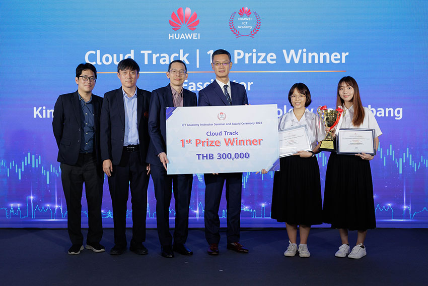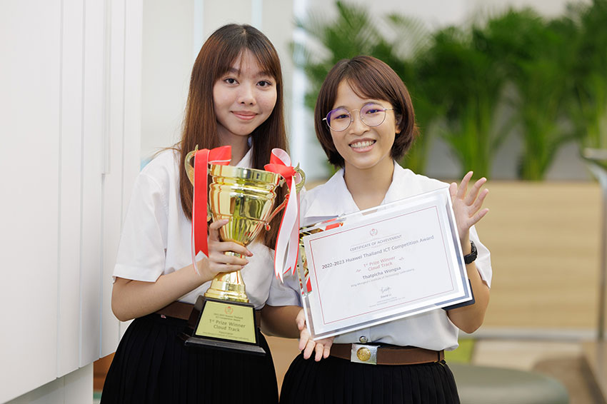 ขณะที่ทีม “FASCINATOR” ทีมชนะเลิศสาขา Cloud Track ซึ่งประกอบด้วย น.ส.ดุษฎี เลิศอภิรักษ์วงศ์ และ น.ส.ทัตพิชา วงษา นักศึกษาปริญญาตรีคณะวิทยาศาสตร์ ร่วมกับ น.ส.ภัทรวรินทร์ ลูกน้ำเพชร นักศึกษาปริญญาตรี คณะศิลปศาสตร์ สถาบันเทคโนโลยีพระจอมเกล้าเจ้าคุณทหารลาดกระบัง ได้กล่าวถึงการคว้าชัยชนะในครั้งนี้ว่า “ด้วยความหลงใหลในเทคโนโลยีและนวัตกรรมต่าง ๆ พวกเราทั้งสามคนจึงมองว่า เราสามารถเป็นมากกว่า “พลเมืองดิจิทัล” ของประเทศได้ นอกจากใช้ประโยชน์จากเทคโนโลยีเพื่อเอื้อกับการใช้ชีวิตแล้ว เรายังต้องการเป็น “บุคลากรดิจิทัล” ให้ได้ เราจึงตัดสินใจฟอร์มทีม “FASCINATOR” ซึ่งหมายถึงความหลงใหลที่มีร่วมกัน และเข้าร่วมแข่งขัน Huawei ICT Competition 2022-2023”