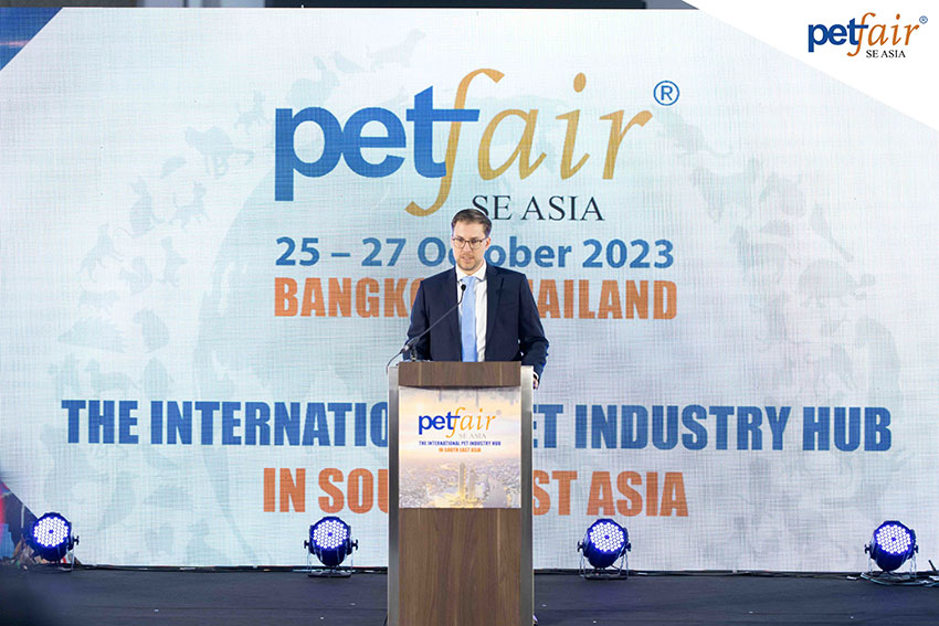 คุณ Igor Palka (อิกอร์ เพาก้า) กรรมการผู้จัดการ บริษัท วีเอ็นยู เอเชีย แปซิฟิค ผู้จัดงาน กล่าวถึงการเติบโตของการจัดงาน Pet Fair Southeast Asia โดยระบุว่างานนี้เริ่มจัดขึ้นในปี 2564 ด้วยวิสัยทัศน์ที่จะกระตุ้นธุรกิจสัตว์เลี้ยงในเอเชียตะวันออกเฉียงใต้ นับตั้งแต่นั้นเป็นต้นมา เรามุ่งมั่นพัฒนางานแสดงสินค้า B2B แห่งแรกในเอเชียตะวันออกเฉียงใต้และไทยซึ่งมีอัตราการเติบโตสูงขึ้นอย่างมาก งานในปีนี้ครอบคลุมพื้นที่นิทรรศการทั้ง 3 ฮอลล์ของศูนย์นิทรรศการและการประชุมไบเทค กรุงเทพฯ โดยมีขนาดเพิ่มขึ้นสองเท่าจากปีที่ผ่านมา และมีแบรนด์ชั้นนำกว่า 300 แบรนด์จาก 40 ประเทศ ครอบคลุมโปรไฟล์ของผู้แสดงสินค้าที่ประกอบธุรกิจเกี่ยวข้องกับสัตว์เลี้ยงที่หลากหลาย โดยมีกลุ่มธุรกิจบริษัทผลิตอาหารสัตว์เลี้ยงคิดเป็นสัดส่วนใหญ่ที่สุดถึง 29% ในงานแสดงสินค้าระดับนานาชาตินี้ท่านจะเห็นได้จากการมีส่วนร่วมของแบรนด์ชั้นนำและพาวิลเลี่ยนระดับนานาชาติจากประเทศต่างๆ เช่น จีน, ไต้หวัน, เกาหลีใต้, แคนาดา และสหรัฐอเมริกา