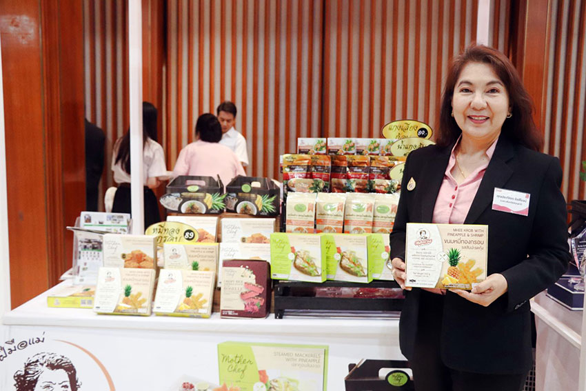 นางสาวประภัสสร รังสิโรจน์ บริษัท เพิ่มทรัพย์บุญทวี จำกัด ทีมผู้ชนะเลิศ กล่าวว่า จุดเริ่มต้นของการทำ Product แบรนด์ Mother chef มาจากภูมิจังหวัดประจวบคีรีขันธ์ ฝั่งตะวันออกเป็นทะเล ฝั่งตะวันตกเป็นพื้นที่ทำการเกษตร เมื่อเกิดวิกฤตสับปะรดล้นตลาด เนื่องจากราคาตกต่ำและเรือออกหาปลาไม่ได้ช่วงโควิด จึงทำให้เกิดไอเดียนำอาหารทะเลและสับปะรดมาแปรรูปเพื่อสร้างรายได้ให้กับชุมชน ส่วนจุดเด่นของผลิตภัณฑ์เป็นอาหารทะเลเพื่อสุขภาพมีทั้งเมนูพร้อมทานและพร้อมปรุง และเป็นเจ้าแรกที่ทำเมนูใหม่ ยกตัวอย่างเช่น น้ำต้มส้มสับปะรดหรือน้ำพริกปลาทูสับปะรด เป็นนวัตกรรมอาหารที่แปลกใหม่ เราพยายามเอาวิถีชาวบ้านผสมผสานนวัตกรรมต่างๆ มาสร้างให้มีมูลค่าเพิ่มขึ้นและเกิดความยั่งยืน อย่างไรก็ตามอยากขอบคุณธนาคารออมสินที่สร้างโอกาสให้ SMEs ขนาดเล็กมีตัวตนและเดินต่อไปข้างหน้าได้ จึงอยากให้มีโครงการนี้ต่อไปเพื่อผู้ประกอบการจะได้มีโอกาสต่อยอดธุรกิจให้เติบโตอย่างยั่งยืน สำหรับรางวัลที่ได้รับมาจากความมุ่งมั่น ความตั้งใจ และความซื่อสัตย์ต่อลูกค้า ส่วนเงินรางวัลจะนำไปพัฒนาผลิตภัณฑ์ใหม่ให้ชุมชน คือ หมี่ทุเรียนป่าละอู และน้ำพริกแกงเขียวหวานก้อน