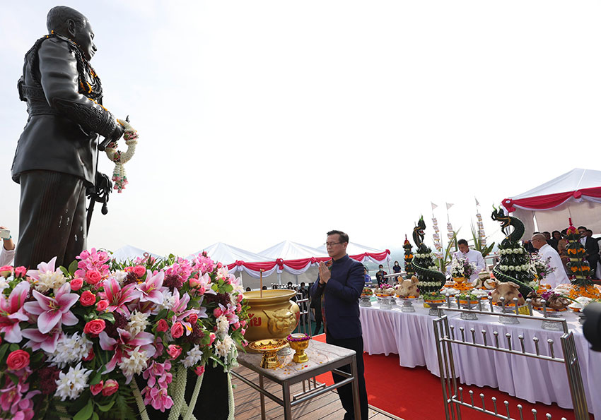 สำหรับพิธีในช่วงเช้าผู้บริหารและพนักงานร่วมทำบุญตักบาตร บวงสรวง ฯพณฯ จอมพลสฤษดิ์ ธนะรัชต์ ณ ลานอนุสาวรีย์เพื่อความเป็นสิริมงคล พร้อมกันนี้ได้รับเมตตาจากสมเด็จพระมหารัชมงคลมุนี (สมเด็จธงชัย) เจ้าคณะใหญ่หนกลาง กรรมการมหาเถรสมาคม วัดไตรมิตรวิทยารามวรวิหาร มาเป็นประธานพิธีสงฆ์ พร้อมด้วยพระภิกษุสงฆ์ จำนวน 8 รูป เจริญพระพุทธมนต์ ถวายภัตตาหารและจตุปัจจัยไทยธรรม และให้สัมโมทนียกถา อำนวยอวยพรแก่ผู้บริหารและพนักงาน พันธมิตร คู่ค้า และผู้ร่วมงาน พร้อมทั้งมอบผ้ายันต์ พระพุทธชินราช 666 ปี ให้ผู้ที่มาร่วมงาน ถือเป็นสิริมงคลเป็นอย่างยิ่ง หลังจากเสร็จสิ้นพิธีสงฆ์ ดร.สมพร สืบถวิลกุล ได้มอบรางวัลให้กับพนักงานที่มีอายุการทำงานตั้งแต่ 10 ปี , 15 ปี , 20 ปี , 25 ปี และ 30 ปี รวมถึงมอบทุนการศึกษาให้บุตร-ธิดาพนักงาน ที่เรียนดี นอกจากนี้บริษัทฯ ยังได้บริจาคเงินสมทบทุนให้กับมูลนิธิชัยพัฒนา และผู้ที่มาร่วมภายในงานสามารถร่วมมอบเงินบริจาคให้กับมูลนิธิชัยพัฒนา เพื่อเป็นการสนับสนุนการดำเนินงานตามโครงการอันเนื่องมาจากพระราชดำริและโครงการพัฒนาอื่นๆ ส่งเสริมการพัฒนา สงเคราะห์และช่วยเหลือประชาชนในด้านเศรษฐกิจและสังคมให้มีคุณภาพชีวิตที่ดีต่อไป