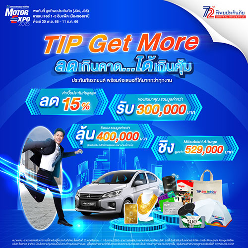 “TIP Get More ลดเกินคาด...ได้เกินคุ้ม” กับแผนประกันภัยรถยนต์ พร้อมข้อเสนอที่ให้มากกว่า อาทิ