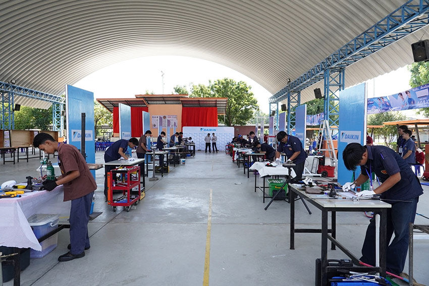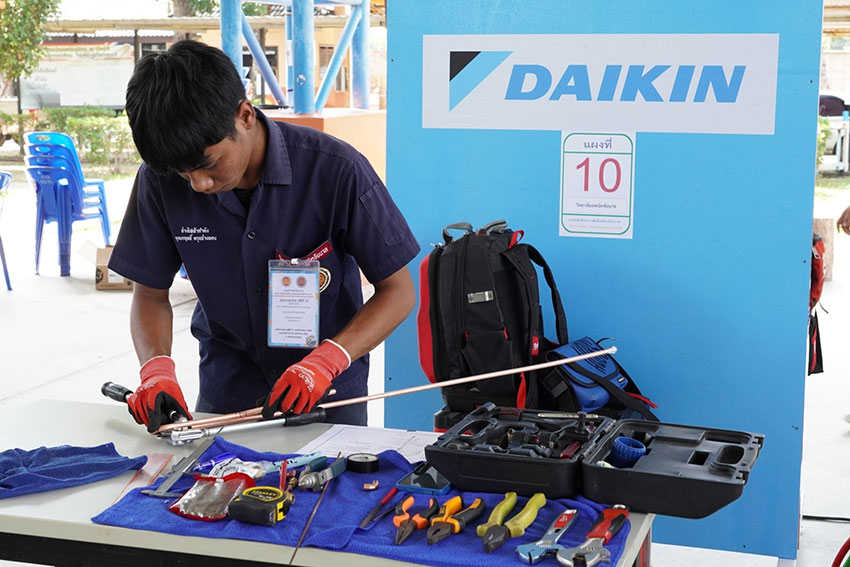 ไดกิ้น เดินหน้าสนับสนุนการแข่งขันทักษะทางวิชาชีพ ทักษะการติดตั้งเครื่องปรับอากาศ ระดับภาค ภาคกลาง ประจำปีการศึกษา 2566 สนับสนุนด้านเครื่องมืออุปกรณ์พร้อมร่วมส่งเสริมทักษะด้านงานท่อเครื่องปรับอากาศ และจัดกิจกรรมพิเศษ Daikin Activity Day สร้างองค์ความรู้แก่ผู้เข้าแข่งขัน ตั้งเป้ายกระดับทักษะนักเรียนนักศึกษาให้ก้าวเป็นบุคลากรที่มีศักยภาพ เป็นกำลังสำคัญให้ตลาดและอุตสาหกรรมเครื่องปรับอากาศในอนาคตต่อไป