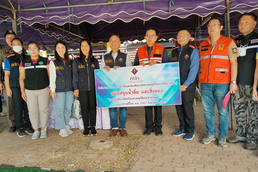 ต่อจากนั้น เมื่อวันที่ 30 ธันวาคม 2566 นายชูฉัตร ประมูลผล เลขาธิการ คปภ. ร่วมกับนางโชลภา ไชยเพียร ผู้อำนวยการภาค สำนักงาน คปภ. ภาค 2 (นครสวรรค์) และนายยศพล จิตติมานุสรณ์ ผู้อำนวยการสำนักงาน คปภ.จังหวัดพิษณุโลก พร้อมทีมงาน ได้มอบน้ำดื่มพร้อมสิ่งของให้แก่ศูนย์อำนวยการป้องกันและลดอุบัติเหตุทางถนนช่วงเทศกาลปีใหม่ พ.ศ. 2567 ณ บริเวณสี่แยกเต็งหนาม แยกทางเข้าบริษัท ไทยแอร์โร่ จำกัด ตำบลหัวรอ อำเภอเมือง จังหวัดพิษณุโลก โดยมีนายภูสิต สมจิตต์ ผู้ว่าราชการจังหวัดพิษณุโลก ร่วมเป็นเกียรติตรวจเยี่ยมเพื่อเป็นขวัญและกำลังใจให้กับเจ้าหน้าที่ผู้ปฏิบัติงานในช่วงเทศกาลปีใหม่