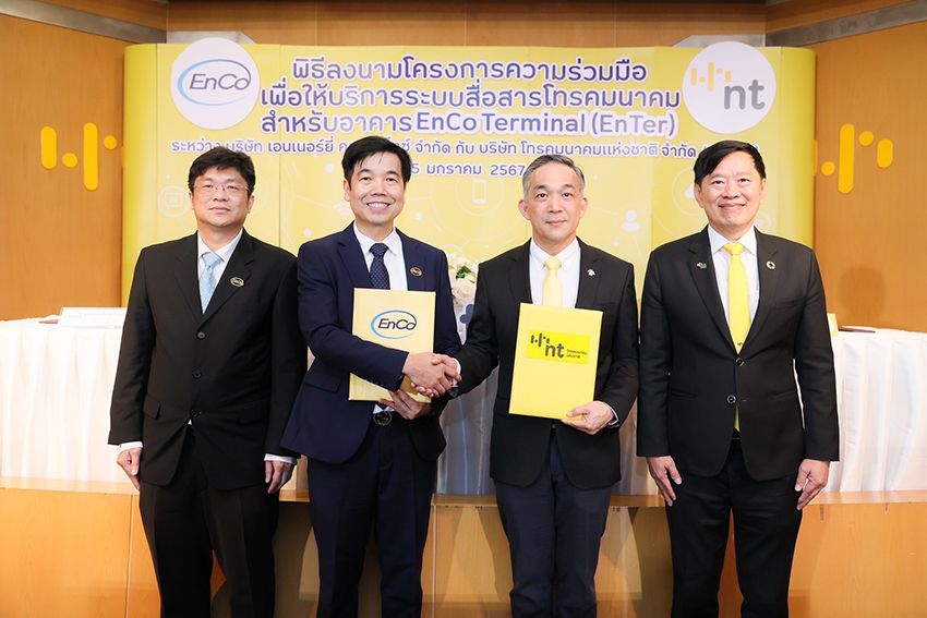 นายศิรศักดิ์ จันเทรมะ กรรมการผู้จัดการใหญ่ บริษัท เอนเนอร์ยี่ คอมเพล็กซ์ จำกัด (EnCo) กล่าวว่า EnCo เป็นบริษัทพัฒนา และบริหารจัดการด้านอสังหาริมทรัพย์ที่ครบวงจร ซึ่งดำเนินธุรกิจหลัก 3 ธุรกิจได้แก่ 1.ธุรกิจบริหารจัดการอสังหาริมทรัพย์ (Property Management) 2.ธุรกิจบริหารจัดการพื้นที่ส่วนกลาง (Facility Management) และ 3.ธุรกิจพัฒนาอสังหาริมทรัพย์ (Property Development) และเมื่อปลายปี 2566 ที่ผ่านมา EnCo ได้เข้าดำเนินการปรับปรุงอาคารศูนย์ฝึกอบรมหลักสี่ บริษัท การบินไทย จำกัด (มหาชน) และเปลี่ยนชื่อเป็น EnCo Terminal หรือ EnTer เพื่อพัฒนาเป็นอาคารสำนักงานล้ำสมัยที่ตอบโจทย์การทำงานของธุรกิจนวัตกรรมกลุ่ม New S-curve ทั้งด้านธุรกิจ Life science ธุรกิจ EV หรือ Future-Tech Startup ต่าง ๆ และในส่วนของการจับมือร่วมกับ เอ็นที (NT) ในครั้งนี้นั้น EnCo มีความมั่นใจว่า ด้วยศักยภาพ องค์ความรู้ และความเชี่ยวชาญ ตลอดจนทรัพยากรด้านเทคโนโลยีสื่อสารโทรคมนาคมที่ทันสมัยของ NT จะช่วยยกระดับอาคาร EnCo Terminal หรือ EnTer ให้กลายเป็นอาคารสำนักงานที่พร้อมไปด้วยนวัตกรรมสำนักงานที่ทันสมัยซึ่งจะสามารถรองรับไลฟ์สไตล์การทำงานในยุคดิจิตอลได้อย่างสมบูรณ์แบบ”