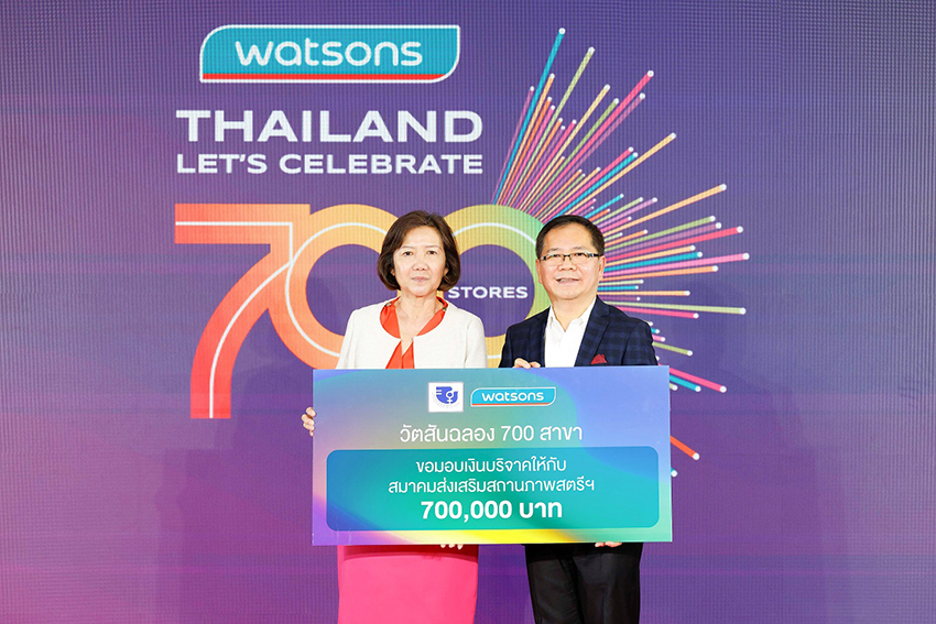 วัตสัน ประเทศไทย ผู้นำร้านเพื่อสุขภาพและความงามอันดับหนึ่งของประเทศไทย จัดงานเฉลิมฉลองสุดยิ่งใหญ่ ”Watsons 700 Stores Celebration” ประกาศความสำเร็จครั้งสำคัญในการเปิดสาขาครบ 700 สาขาทั่วประเทศ ณ เซ็นทรัล เวสต์วิลล์ โดยได้รับเกียรติจากแขกผู้มีเกียรติและพาร์ทเนอร์คนสำคัญมาร่วมแสดงความยินดีและเฉลิมฉลองประวัติศาสตร์ครั้งนี้มากมาย โดยเฉพาะอย่างยิ่ง คุณมาลิน่า ไหง ประธานกรรมการบริหาร เอเอส วัตสัน (เอเชียและยุโรป) และประธานเจ้าหน้าที่ฝ่ายปฏิบัติการกลุ่ม แขกคนสำคัญที่เดินทางมาเข้าร่วมงานและแสดงความยินดีในพิธีเฉลิมฉลองอย่างเป็นทางการนี้ด้วย