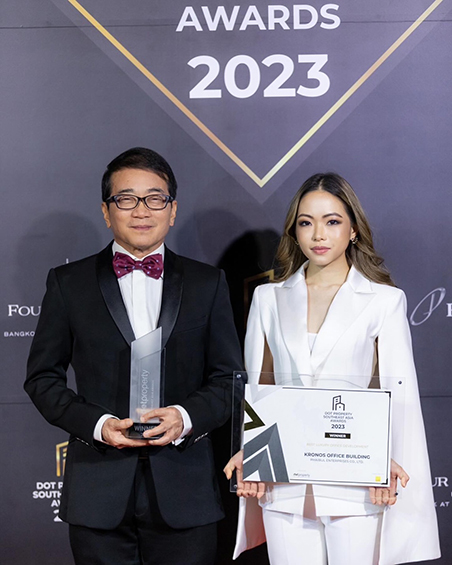 โครนอส สาทร (KRONOS SATHORN) อาคารสำนักงานระดับอัลตร้าลักชัวรีบนทำเลสาทร ย่านธุรกิจหลักของกรุงเทพฯ มูลค่าโครงการกว่า 4,000 ล้านบาท ประกาศความภาคภูมิใจล่าสุด คว้ารางวัลใหญ่ “Best Luxury Office Development” ซึ่งเป็นรางวัลสูงสุดระดับภูมิภาคจาก “Dot Property Southeast Asia Awards 2023” เวทีใหญ่เพื่อเชิดชูเกียรติผู้พัฒนาอสังหาฯ คุณภาพระดับสากล ตอกย้ำมาตรฐานและความเหนือระดับของโครงการอันเป็นที่ยอมรับในระดับโลก เผยอัตราการเช่าพื้นที่อาคารสำนักงานและพื้นที่ค้าปลีกปัจจุบันมีผู้เช่าแล้วราว 40% และตั้งเป้ามีผู้เช่าเพิ่มขึ้นเป็น 70% ภายในปี 2567 พร้อมเผยแผนรุกตลาดผู้เช่าและทิศทางตลาดอาคารสำนักงานเช่าปี 2567 มีการแข่งขันสูงโดยเฉพาะทำเลใจกลางเมือง อาคารสำนักงานเกรด A โดยเฉพาะโครงการใหม่ยังมีดีมานด์ต่อเนื่อง รับเทรนด์กลับมาทำงานออฟฟิศ และความเชื่อมั่นบริษัทข้ามชาติเริ่มเข้ามาลงทุนในประเทศเพิ่มขึ้น ชี้ 3 คีย์ซักเซสที่ตอบโจทย์ผู้เช่า อาคารต้องเด่นทำเลสะดวก-เทคโนโลยีทันสมัย-บรรยากาศตอบโจทย์ไลฟ์สไตล์