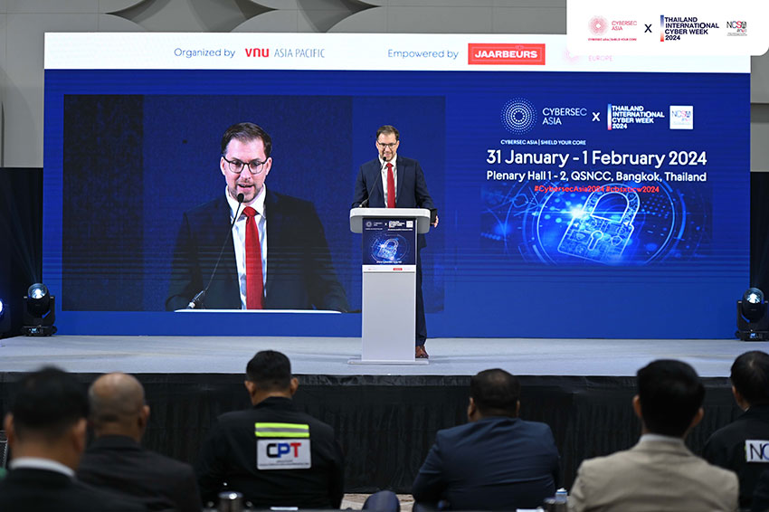 พิธีเปิดงาน Cybersec Asia x Thailand International Cyber Week 2024 เริ่มต้นวันนี้ 31 มกราคม 2567 ได้ต้อนรับผู้นำทางธุรกิจและแขกผู้มีเกียรติมากกว่าร้อยคนในงานพิธีเปิดอย่างเป็นทางการ รวมถึงตัวแทนจากหน่วยงานภาครัฐ สถานทูต สมาคม บริษัทเอกชน และสื่อมวลชน เพื่อรวมกันเป็นแกนหลักในการขับเคลื่อนการพัฒนาและผลักดันวิวัฒนาการด้านความปลอดภัยทางไซเบอร์ในเอเชีย