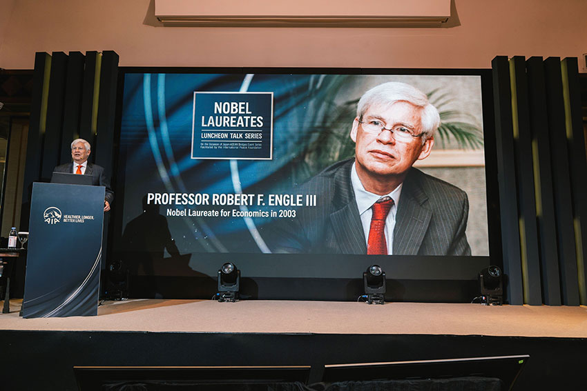 เอไอเอ ประเทศไทย เดินหน้าจัดงาน AIA Nobel Laureates Luncheon Talk Series ซึ่งเป็นส่วนหนึ่งของงาน Japan-ASEAN Bridges Event Series ร่วมกับ The International Peace Foundation ในหัวข้อ “A Financial Approach to Climate Risk” โดยศาสตราจารย์โรเบิร์ต เอนเกิล เจ้าของรางวัลโนเบลสาขาเศรษฐศาสตร์ ปี 2546 ซึ่งได้ค้นพบโมเดล Autoregressive Conditional Heteroskedasticity (ARCH) ที่นำมาใช้วิเคราะห์ความผันผวนของดัชนีหลักทรัพย์ รวมไปถึงการคิดค้น "แผนป้องกันความเสี่ยงด้านสภาพภูมิอากาศ" (Climate Hedge Portfolios) ซึ่งถือเป็นความเสี่ยงระยะยาวที่จะส่งผลกระทบต่อเศรษฐกิจและการดำรงชีวิตของทุกคน เพื่อต่อยอดความมุ่งมั่นของเอไอเอ ที่ต้องการสนับสนุนให้คนไทยมีสุขภาพชีวิตและสุขภาพการเงินที่มั่นคงอย่างยั่งยืน ตามคำมั่นสัญญา ‘Healthier, Longer, Better Lives – เพื่อสุขภาพและชีวิตที่ดีขึ้น’ ร่วมด้วยผู้ทรงคุณวุฒิและนักวิชาการจากหลากหลายสถาบันที่เข้าร่วมรับฟังการบรรยายในครั้งนี้ ซึ่งจัดขึ้นเมื่อวันที่ 28 กุมภาพันธ์ 2567 ณ ห้องบอลรูม โรงแรมสุโขทัย กรุงเทพ