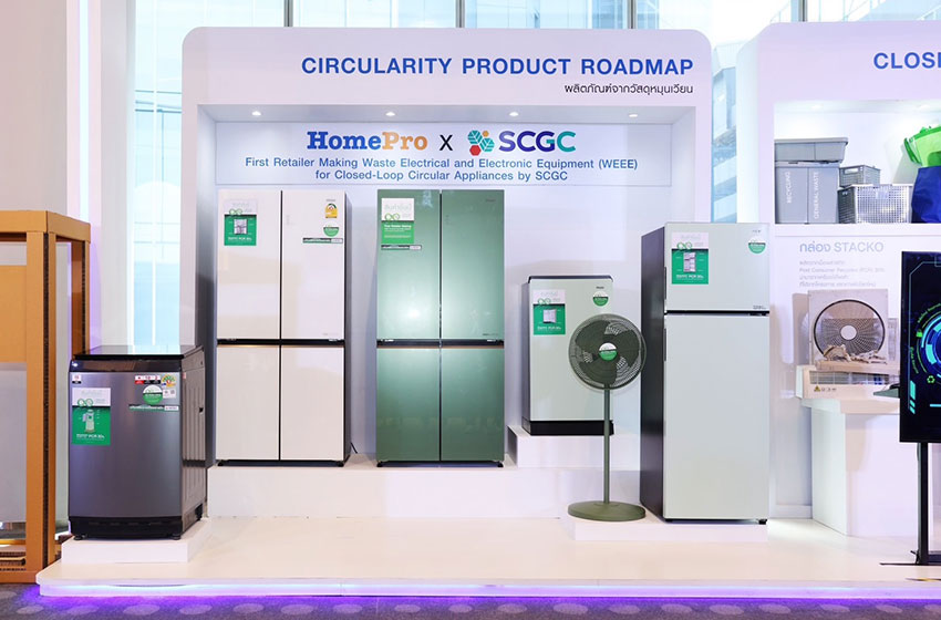 “โฮมโปร (HomePro)” ร่วมกับ “เอสซีจีซี (SCGC)” ลงนามบันทึกความร่วมมือรักษ์โลกด้วย Circular Product พร้อมเปิดตัว “เครื่องใช้ไฟฟ้ารักษ์โลก” ผลิตจากเครื่องใช้ไฟฟ้าใช้แล้วเป็นครั้งแรกในประเทศไทย ขับเคลื่อนการรีไซเคิลระบบ Closed-Loop หรือ “First Retailer Making Waste Electrical and Electronic Equipment (WEEE) for Closed-Loop Circular Appliances Collaboration with SCGC” ด้วยการจัดการเครื่องใช้ไฟฟ้าใช้แล้วให้กลับเข้าสู่กระบวนการรีไซเคิลระบบปิดอย่างครบวงจร เปลี่ยนเป็น Green Polymer เม็ดพลาสติกรีไซเคิลคุณภาพสูง (High Quality PCR) สามารถนำมาผลิตเป็นสินค้าใหม่ที่มีมูลค่า ส่งเสริมการสร้างเศรษฐกิจหมุนเวียนอย่างเป็นรูปธรรม พร้อมผสานความเชี่ยวชาญกับพันธมิตรด้วยการนำพลาสติกรีไซเคิลจากโครงการ “แลกเก่าเพื่อโลกใหม่” (Trade In) มาพัฒนาเป็นสินค้ารักษ์โลก (Circular Product) สร้างการเติบโตร่วมกันอย่างยั่งยืนตลอดห่วงโซ่อุปทาน ตอบสนองวัตถุประสงค์ Make Every Change for Better Life