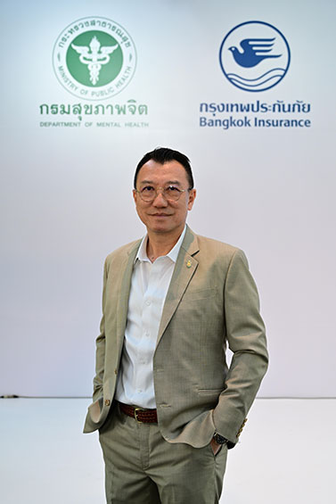 นพ.พงศ์เกษม ไข่มุกด์ อธิบดีกรมสุขภาพจิต กระทรวงสาธารณสุข กล่าวถึงสถานการณ์ภาวะซึมเศร้าของไทยว่า “แม้โลกจะมีการพัฒนาเทคโนโลยีและนวัตกรรมสมัยใหม่ให้เข้ามามีส่วนช่วยในทุกระบบ แต่พบว่าคนไทยยังคงเผชิญกับภาวะปัญหาทางสุขภาพจิตเพิ่มขึ้น ประชาชนใช้ชีวิตท่ามกลางความเครียด วิตกกังวล ซึมเศร้า เจ็บป่วยด้วยปัญหาสุขภาพจิตและยาเสพติด จะเห็นได้จากจำนวนผู้ป่วยทางจิตเวชในไทย เพิ่มขึ้นเกือบ 2 เท่า จาก 1.3 ล้านคน ในปี 2558 เป็น 2.3 ล้านคน ในปี 2564 จากข้อมูลล่าสุดบนระบบรายงาน HDC ของกระทรวงสาธารณสุขปี 2566 พบว่าผู้ป่วยจิตเวชและยาเสพติดที่รักษาแบบผู้ป่วยนอก เพิ่มขึ้นกว่า 3 แสนรายหรือคิดเป็นร้อยละ 12.09 รวมถึงประมาณการณ์ว่าคนไทยอายุ 15 ปีขึ้นไป ป่วยด้วยโรคซึมเศร้าถึง 1.5 ล้านคน และอาจมีเพียง 1 ใน 3 เท่านั้นที่เข้ารับการบำบัดดูแล ซึ่งหากไม่ได้รับการดูแลอย่างทันท่วงทีอาจนำไปสู่ปัญหาสุขภาพจิตที่รุนแรงขึ้น เนื่องจากพบสถิติว่าโรคซึมเศร้าเป็นหนึ่งในสาเหตุหลักนำไปสู่การ ฆ่าตัวตายของคนไทยและผู้ป่วยซึมเศร้ามีแนวโน้มการฆ่าตัวตายสูงกว่าคนทั่วไป และมีแนวโน้มที่จะเสียชีวิตก่อนวัยอันควรถึงร้อยละ 70 โดยพบว่าอัตราส่วนจิตแพทย์ 1.25 คน ต้องดูแลคนไทยถึง 1 แสนคน จึงมีความจำเป็นอย่างยิ่งที่ทุกภาคส่วนจะขยับเข้ามามีส่วนร่วมในช่วยเหลือให้คนไทยมีสุขภาวะทางจิตที่ดีอย่างถ้วนหน้า โดยไม่จำเป็นว่าต้องเป็นภาคส่วนที่มาจากด้านสาธารณสุขเพียงอย่างเดียว แต่อาจมาจากภาคเอกชนที่มีความสนใจและใส่ใจในการมีสุขภาวะทางจิตที่ดีของสังคมไทย การมีส่วนร่วมจากภาคส่วนต่างๆ จะทำให้เกิด ผลลัพธ์ที่แตกต่างไปจากการดำเนินงานด้านสุขภาพจิตในปัจจุบัน ช่วยให้เกิดนวัตกรรมใหม่ๆ ที่ไม่เคยเกิดขึ้นมาก่อน และเกิดขึ้นได้ทุกที่ ทุกเวลา ซึ่งสิ่งนี้อาจเป็นคำตอบของการมีสุขภาวะทางจิตที่ดีและความสุขของสังคมไทยอย่างยั่งยืน กรมสุขภาพจิต รู้สึกยินดีเป็นอย่างยิ่งที่ได้เห็นทางบริษัท กรุงเทพประกันภัย จำกัด (มหาชน) ได้เข้ามีส่วนสนับสนุนและผลักดันให้เกิดการสร้างความตระหนักและรอบรู้ด้านสุขภาพจิต โดยเฉพาะในประเด็นที่เกี่ยวข้องกับโรคซึมเศร้าซึ่งไม่เพียงแต่จะช่วยผู้ป่วยและครอบครัวที่กำลังต่อสู้กับปัญหาเหล่านี้