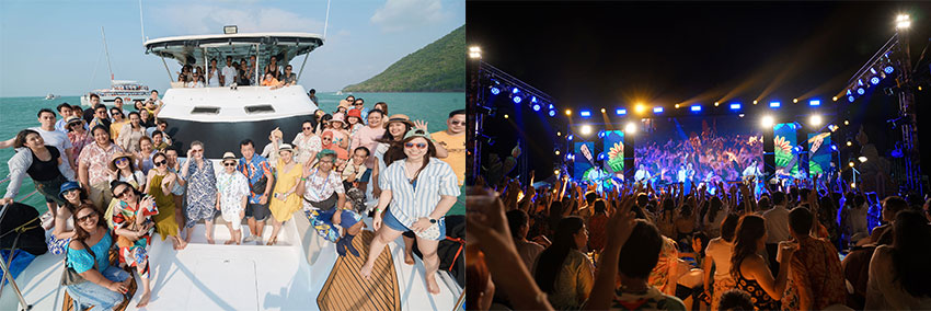 บมจ.กรุงไทย-แอกซ่า ประกันชีวิต นำโดย คุณแซลลี่ โอฮาร่า ประธานเจ้าหน้าที่บริหาร (คนที่ 8 จากซ้าย) และคุณบุปผาวดี โอวรารินท์ ประธานเจ้าหน้าที่บริหาร ฝ่ายทรัพยากรบุคคลและภาพลักษณ์องค์กรและการสื่อสารองค์กร (คนที่ 9 จากซ้าย) จัดกิจกรรม 2024 KTAXA Staff Outing ภายใต้ธีม “Aloha Paradise by KTAXA” ด้วยการพาพนักงานไปรับลมทะเลและระเบิดความมันส์กันแบบสุดเหวี่ยงผ่านกิจกรรมมากมาย อาทิ ล่องเรือยอร์ชสุดหรูที่มีพนักงานไปร่วมดื่มด่ำบรรยากาศสนุกๆ กลางทะเล กิจกรรม Know You Can Awards โชว์สุดว้าวจากพนักงาน กิจกรรม Aloha Treasure Hunting ที่เปิดโอกาสให้นักล่าสมบัติได้คว้ารางวัลติดไม้ติดมือก่อนจะจับฉลากใหญ่ อีกทั้งยังมีโชว์สุดเซอร์ไพรส์จากผู้บริหารของเรา พร้อมจุดพลุสุดตระการตา และปิดท้ายกันที่คอนเสิร์ตสุดปังจาก 2 ศิลปิน ดา เอ็นโดรฟิน และอ๊อฟ ปองศักดิ์ ให้ทุกคนได้ร้องตามเพลงฮิตไปด้วยกัน ณ พัทยา