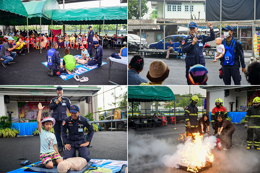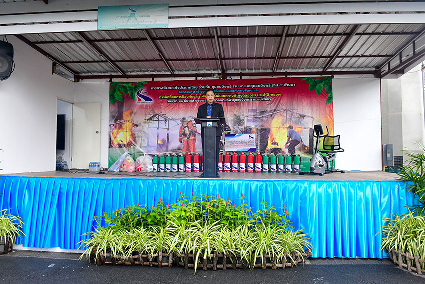 นายพิศาล ไทยสม ผู้อำนวยการฝ่ายกรรมสิทธิที่ดิน กทพ. กล่าวว่า ได้ตระหนักและให้ความสำคัญในการเสริมสร้างสังคมในพื้นที่รอบเขตทางพิเศษให้เกิดความเข้มแข็ง ความสามัคคี และส่งเสริมความสัมพันธ์อันดีให้เกิดขึ้นระหว่างการทางพิเศษแห่งประเทศไทยและชุมชนรอบเขตทางพิเศษ โรงเรียน และหน่วยงานอื่น ๆ รอบเขตทางพิเศษอย่างยั่งยืนลดพื้นที่เสี่ยง เพื่อให้ชุมชนช่วยดูแลพื้นที่รอบเขตทางพิเศษ โดยการจัดกิจกรรมการสร้างชุมชนเครือข่ายเป็นมิตรกับทางพิเศษ และกิจกรรมการฝึกซ้อมการป้องกันและระงับอัคคีภัย ทางพิเศษฉลอง ประจำปี 2567 ในวันนี้ ได้รับความร่วมมือจาก ชุมชนบึงพระราม 9 ชุมชนบึงพระราม 9 พัฒนา โรงเรียนเด็กเล็กก่อนวัยเรียนชุมชน บึงพระราม 9 โรงเรียนเด็กเล็กก่อนวัยเรียนชุมชนบึงพระราม 9 พัฒนา สำนักงานเขตห้วยขวาง สถานีดับเพลิงบางกะปิ และสถานีตำรวจนครบาลวังทองหลาง เข้าร่วมกิจกรรมการฝึกซ้อมป้องกันและระงับอัคคีภัยในวันนี้ ซึ่ง กทพ. ต้องขอขอบคุณหน่วยงานต่าง ๆ ที่ให้ความร่วมมือเป็นอย่างดีมาโดยตลอด โดยในวันนี้ ได้จัดให้ความรู้วิธีการดับเพลิง การฝึกซ้อมขั้นตอนอพยพกรณีเกิดเหตุเพลิงไหม้ การปฐมพยาบาลเบื้องต้น การช่วยฟื้นคืนชีพ (First Aid & CPR) ให้กับชาวชุมชนรอบเขตทางพิเศษ ในการป้องกันและระงับอัคคีภัยรวมถึงให้ความช่วยเหลือในกรณีเกิดอัคคีภัย พร้อมทั้งได้มอบมอบอุปกรณ์ถังดับเพลิงสีแดง จำนวน 10 ถัง ถังดับเพลิงสีเขียว จำนวน 5 ถัง จักรยานออกกำลังกายจำนวน 1 เครื่อง และของที่ระลึกให้กับชุมชนบึงพระราม 9 และมอบถังดับเพลิงสีเขียว จำนวน 5 ถัง อุปกรณ์กีฬา ติดตั้งชิงช้า 3 ตัว ที่สนามเด็กเล่น และของที่ระลึกให้กับชุมชนบึงพระราม 9 พัฒนา อีกด้วย