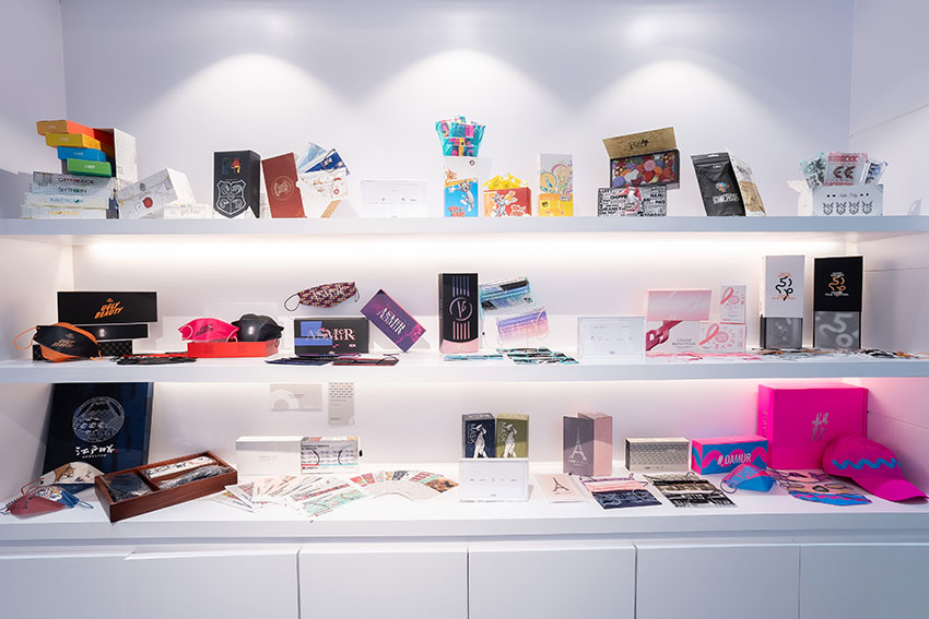 ส่วนคอลเลกชันหน้ากากอนามัย ที่นำแบบมาจัดแสดงภายในงาน ส่วนใหญ่จะเป็นความร่วมมือกับแบรนด์แฟชั่น อานิเมะชื่อดัง ศิลปินที่มีชื่อเสียง อาทิ BVLGARI, ELLE, Tom & Jerry, One Piece, Jolin Tsai, Mayday เป็นต้น นอกจากนี้ยังได้นำคอลเลกชันล่าสุดที่เปิดตัวในไต้หวันมาจัดแสดงในงานด้วย อาทิ ความร่วมมือกับแฟรนไชส์ภาพยนตร์ Harry Potter, แบรนด์สตรีทแวร์จากเยอรมัน #DAMUR และแบรนด์เดนิมระดับพรีเมียมของญี่ปุ่น Edo Katsu ทั้งนี้บริษัทได้ดำเนินการออกแบบหน้ากากอนามัยหลากหลายสไตล์ รวมทั้งหมดมากกว่า 700 แบบแล้ว