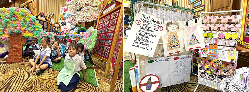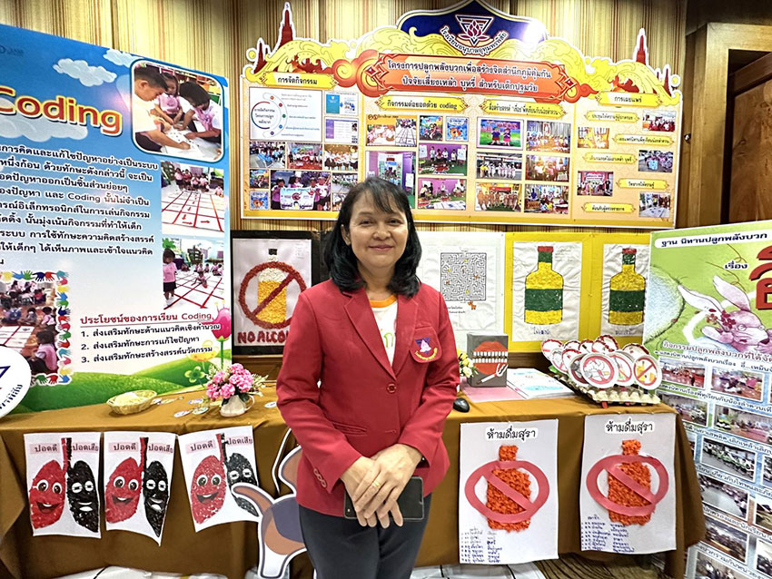 “สิ่งที่เราปลูกฝัง สร้างภูมิคุ้มกันให้กับเด็ก อาจจะไม่เห็นผลในวันนี้ แต่การปลูกฝังให้เขามีความรักตัวเอง รู้จักคิดวิเคราะห์ แยกแยะว่าอะไร เป็นสิ่งที่ดีหรือไม่ดีสำหรับเขา โดยผ่านกิจกรรมต่างๆ เช่น นิทานกระจงก่งก๊ง กระจงตกถังสุรา ให้เขาเป็นตัวละครที่จะต้องเดินทางผ่านอุปสรรคอย่างไรไม่ให้ตกถังสุรา จำลองให้เขาพบอุปสรรคระหว่างทางให้เขารู้จักคิดเป็น ทำอย่างไรให้ตนเองรอดปลอดภัยจนถึงปลายทางได้ ต่าง ๆ เหล่านี้เป็นการปลูกฝังให้อยู่ในจิตใต้สำนึกของเขาตั้งแต่วัยเด็ก จะเป็นการสร้างภูมิให้เขารู้จักหลีกเลี่ยงป้องกันตนเองจากปัจจัยเสี่ยง เขาจะเติบโตขึ้นเป็นคนคุณภาพของสังคม” ครูปิยะพร กล่าวในตอนท้าย