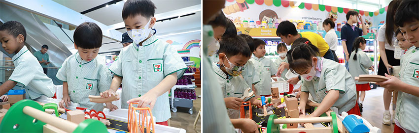 สิ่งที่เด็กๆ ได้มาสัมผัสและร่วมสนุกไปกับกิจกรรม 7 Kids Club ประกอบด้วย ฐาน 7 Kids Club: เซเว่น อีเลฟเว่นจำลอง ที่ให้เด็ก ๆ ทุกคนได้สวมบทบาทเป็นพนักงานเซเว่นฯ สุดน่ารัก อาทิ พนักงานแคชเชียร์, พนักงานเติมสินค้า, พนักงานชง All Café, พนักงาน Chef, พนักงาน Delivery โดยในกิจกรรมมีพี่เลี้ยงคอยดูแลและมอบประสบการณ์ที่สนุกสนานอย่างใกล้ชิด ฐาน 7 Art: พัฒนาทักษะความคิดสร้างสรรค์กับกิจกรรมพิเศษต้อนรับวันแม่ ชวนเด็กๆ รังสรรค์ของขวัญคิ้วท์ๆ บอกรักแม่ฉบับเซเว่น พร้อมทั้งได้เสริมสร้างทักษะศิลปะด้วยกิจกรรม “หน้ากากแห่งความฝัน” ให้เด็ก ๆ สร้างหน้ากากไว้สวมใส่ด้วยการปั้นดินเบาเรืองแสงตามจินตนาการ