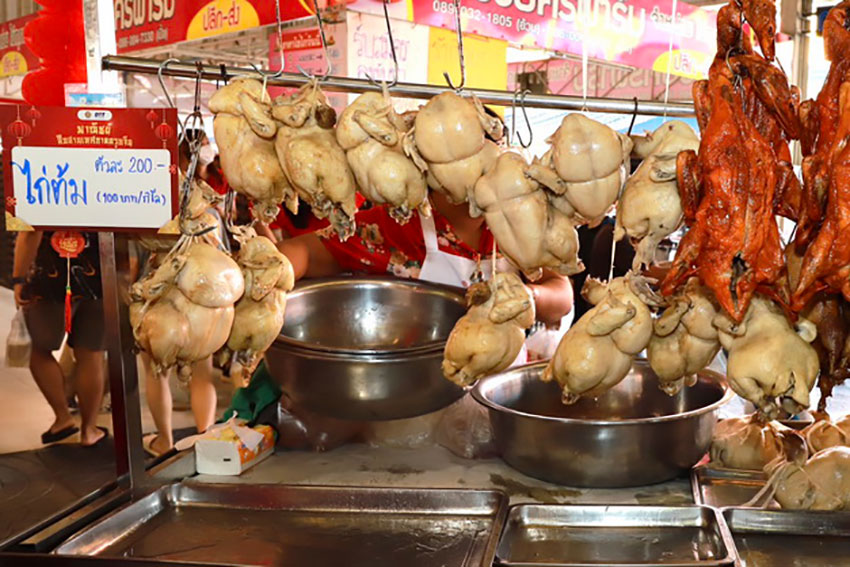 นายวิทยากร กล่าวว่า กรมได้ตรวจเยี่ยมการจำหน่ายสินค้า ณ ร้านค้าภายในตลาดเวิลด์มาร์เก็ต พบว่า บรรยากาศเป็นไปด้วยความคึกคักกว่าปีก่อน มีพ่อค้าแม่ค้า นำสินค้าที่เกี่ยวกับตรุษจีน มาจำหน่ายเป็นจำนวนมาก และประชาชนให้ความสนใจเข้ามาเลือกซื้อสินค้า โดยสินค้าที่ได้รับความนิยมอย่างไก่สด ราคาอยู่ที่ 80-85 บ./กิโลกรัม (กก.) และไก่ต้มสุก ราคาอยู่ที่ 125-130 บ./กก. ส่วนใหญ่ราคาใกล้เคียงกับปีที่ผ่านมา ไม่มีการปรับขึ้นราคาแต่อย่างใด เนื่องจากผู้ค้าอยากขายเพื่อสร้างรายได้