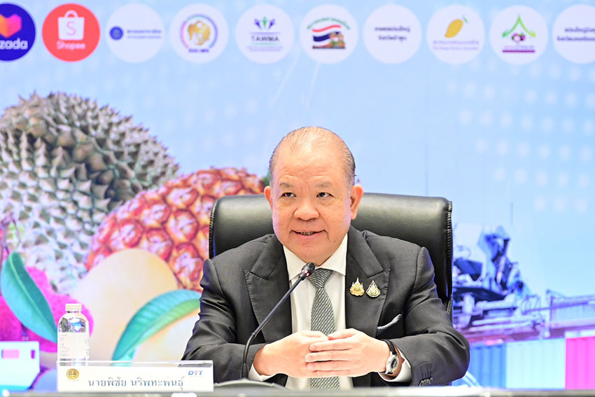 “กระทรวงพาณิชย์ทำงานร่วมกับกระทรวงเกษตรฯ กระทรวงคมนาคม กระทรวงการต่างประเทศ และทูตพาณิชย์ เพื่อให้เกษตรกรขายผลไม้ได้ราคาสูงสุด เราต้องใช้ตลาดนำ นวัตกรรมเสริม และเพิ่มรายได้ให้เกษตรกร” นายพิชัยกล่าว