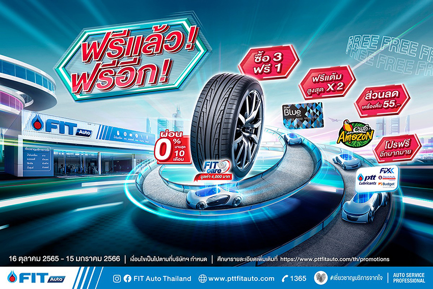 พบกับโปรโมชัน ฟรีแล้ว! ฟรีอีก! ปรากฏการณ์โปรโมชันครั้งยิ่งใหญ่สุดแรงแห่งปี พร้อมแล้วติดเครื่องยนต์รีบไปฟิตรถกันเลยที่ ศูนย์บริการยานยนต์ FIT Auto ตั้งแต่วันที่ 16 ตุลาคม 2565 - 15 มกราคม 2566 ทุกสาขาทั่วประเทศ สามารถค้นหาสาขา FIT Auto ได้ที่ https://www.pttfitauto.com/th/branch หรือสอบถามเพิ่มเติม Contact Center โทร. 1365 กด 17
