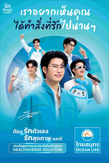 OCEAN LIFE ไทยสมุทร ขับเคลื่อนองค์กรด้วยพลังความรัก พร้อมสนับสนุนทุกคนใช้ชีวิตด้วยแนวคิด LOVE MINDSET รักสามด้านที่พร้อมก้าวผ่านทุกความไม่แน่นอน คือรักสุขภาพ LOVE YOUR HEALTH รักการออมและวางแผนการเงิน LOVE YOUR WEALTH และรักษ์โลกดูแลสังคม LOVE THE WORLD ติดตามกิจกรรมดี ๆ ของบริษัทผ่านทาง OCEAN CLUB APPLICATION / LINE : @oceanlife / Facebook : Oceanlifepage และเว็บไซต์ www.ocean.co.th หรือติดต่อศูนย์ลูกค้าสัมพันธ์ โทร.0 2207 8888