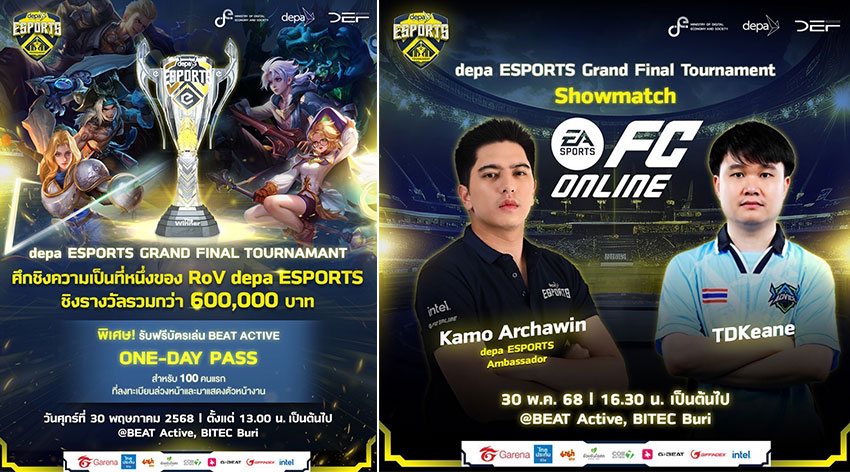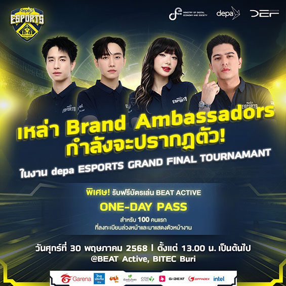 ดีป้า ประกาศความพร้อมจัดการแข่งขัน depa ESPORTS TOURNAMENT (Grand Final Tournament) เวทีแสดงศักยภาพของทีมอีสปอร์ตหน้าใหม่ ซึ่งเป็นตัวแทนจากสนามภูมิภาค เพื่อชิงความเป็นสุดยอดทีมในโครงการ depa ESPORTS TOURNAMENT และก้าวสู่เส้นทางในวงการอีสปอร์ต อีกทั้งเป็นกำลังสำคัญในการขับเคลื่อนอุตสาหกรรมอีสปอร์ตไทย และยกระดับเศรษฐกิจดิจิทัลของประเทศ แฟน ๆ อีสปอร์ตห้ามพลาด! แล้วพบกันวันศุกร์ที่ 30 พฤษภาคมนี้ที่ BEAT Active BITEC BURI