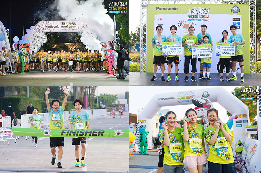 กิจกรรม “Panasonic Hero Run Green Impact For Charity 2024” ถือเป็นอีกหนึ่งกิจกรรมที่ สอดคล้องกับแนวคิด Panasonic Green Impact ภารกิจเพื่อสิ่งแวดล้อมของพานาโซนิคกรุ๊ปทั่วโลก ซึ่งในปีที่ผ่านมา กลุ่มบริษัทพานาโซนิคในประเทศไทย ได้เริ่มมีการนำระยะทางการวิ่งมาเปลี่ยนเป็นต้นไม้ โดยทุกๆ 10 กิโลเมตร เปลี่ยนเป็นต้นไม้ 1 ต้น เพื่อนำไปปลูกยังพื้นที่ต่างๆ ทั่วประเทศ และได้มีการดำเนินการปลูกไปแล้วในพื้นที่จังหวัดขอนแก่น จำนวน 570 ต้น ในปีนี้จึงได้มีการเชิญชวนให้พนักงานทุกคนมาร่วมวิ่งเพื่อสะสมระยะเพิ่มเติม โดยแบ่งการวิ่งออกเป็น 2 รูปแบบคือ การวิ่งในสนามจริง สามารถสะสมระยะทางการวิ่งได้กว่า 5,160 กิโลเมตร และการวิ่งผ่านกิจกรรม Virtual run ในช่วงเดือนตุลาคมที่ผ่านมา สามารถสะสมระยะทางการวิ่งได้กว่า 3,593 กิโลเมตร รวมเป็นระยะทางทั้งหมด 8,753 กิโลเมตร สามารถเปลี่ยนเป็นต้นไม้ได้ถึง 875 ต้น ซึ่งจะนำไปปลูกที่ จ. อยุธยาต่อไป