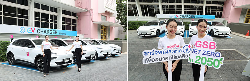 ซึ่งภายใต้แผนดังกล่าวธนาคารตั้งเป้าหมายการเปลี่ยนมาใช้รถยนต์ไฟฟ้า ทดแทนการใช้รถเครื่องยนต์สันดาปในการปฏิบัติงานให้ครบทั้งที่สำนักงานใหญ่ และในภารกิจของสายงานกิจการสาขาทุกภูมิภาคทั่วประเทศ ภายในปี 2030 ทั้งนี้ ธนาคารได้ประกาศแผนการดำเนินงาน GSB Net Zero Roadmap ขึ้นเป็นครั้งแรกในปี 2566 โดยได้กำหนดเป้าหมายการดำเนินงานหลายด้านเพื่อมุ่งสู่เป้าหมายความเป็นกลางทางคาร์บอน (Carbon Neutral) ในปี 2030 หรือในอีก 4 ปีข้างหน้า และบรรลุเป้าหมาย Net Zero ในปี 2050 ประกอบด้วยแผนการดำเนินงาน อาทิ การงดเว้น/ยกเลิกการให้สินเชื่อภาคธุรกิจที่ใช้พลังงานฟอสซิล