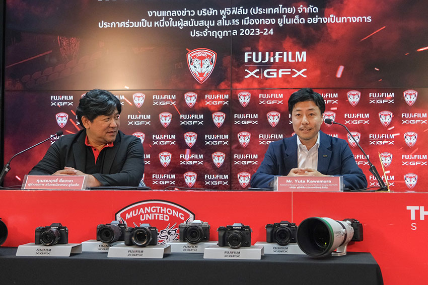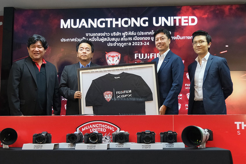 เมื่อเร็วๆ นี้ ที่สนามธันเดอร์โดม สเตเดี้ยม เมืองทองธานี ได้มีการจัดงานแถลงข่าวเซ็นสัญญาเปิดตัวผู้สนับสนุนรายใหม่ ฤดูกาล 2023/24 ระหว่างสโมสร เมืองทอง ยูไนเต็ด และ บริษัท ฟูจิฟิล์ม (ประเทศไทย) จำกัด ผู้นำธุรกิจด้านการถ่ายภาพชั้นนำจากประเทศญี่ปุ่น โดยในงานได้รับเกียรติจาก มร.ยูตะ คาวามูระ Assistant to Managing Director (AMD) and Head of Electronic imaging, Asia Pacific บริษัท ฟูจิฟิล์ม (ประเทศไทย) จำกัด, คุณวิลักษณ์ โหลทอง ประธานสโมสร เมืองทอง ยูไนเต็ด, คุณรณฤทธิ์ ซื่อวาจา ผู้อำนวยการสโมสร เมืองทอง ยูไนเต็ด พร้อมนักฟุตบอล ท่ามกลางกองทัพสื่อมวลชนเข้าร่วมงาน รวมถึงการรับชมการถ่ายทอดสดผ่านช่องสโมสรเมืองทองฯ Official Fanpage และ YouTube เป็นจำนวนมาก