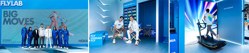 ภายในงานยังได้เนรมิตให้ลานสยามดิสคัฟเวอรี่ พลาซ่า เป็นพื้นที่แห่ง HOKA FLYLAB ที่ซึ่งรวมรากฐานความสุขและมีจุดกำเนิดมาจากหัวใจของแบรนด์โฮก้า ศูนย์กลางของนวัตกรรมล้ำสมัยล่าสุดของแบรนด์ที่ถูกนำมาจัดแสดงและให้ผู้ร่วมงานได้เข้าร่วมกิจกรรมทั้ง 5 โซน ประกอบด้วย โซนจัดแสดงประวัติของแบรนด์โฮก้า, โซนบริการวัดรูปเท้าพร้อมคำแนะนำไซซ์รองเท้าด้วยระบบ 3D ผ่านเครื่องสแกนเท้าที่แม่นยำอย่าง SafeSize, โซนทดลองรองเท้าที่ให้บริการทั้งรุ่นสาย Performance และรุ่น Lifestyle, โซน Flylab Photo ที่ให้ทุกคนได้มาร่วมถ่ายภาพเท่ๆในสไตล์ Bird Fly View เพื่อโพสต์และแชร์ประสบการณ์ผ่านโซเชียลมีเดีย และโซน AR Photo ที่มาพร้อมกับนวัตกรรมของ HOKA อีกทั้งยังสามารถช้อปปิ้ง เวปไซต์ www.hoka.rev.co.th ผ่านแท็ปเล็ตได้ทันทีภายในงาน Flylab จึงเป็นมากกว่าป็อบอัพโชว์เคส แต่ยังเป็นจุดเช็คอินของแบรนด์ที่เปิดพื้นที่ให้ทุกคนได้สัมผัสประสบการณ์ผ่านนวัตกรรมของแบรนด์โฮก้าอีกด้วย