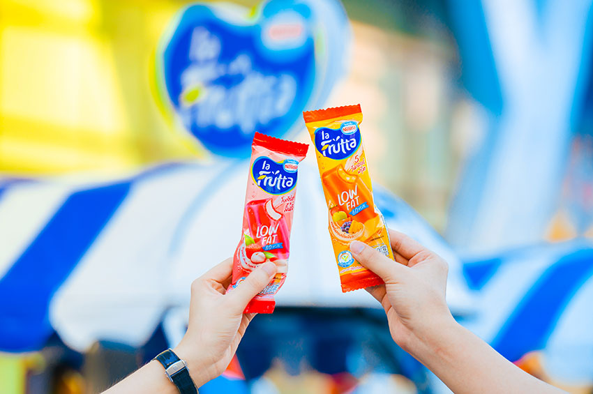 ภายใต้แคมเปญนี้ เนสท์เล่ ไอศกรีมชูไฮไลท์ 5 กลยุทธ์เด็ดพลิกโฉมแบรนด์แบบจัดเต็ม เพื่อให้เข้าถึงกลุ่มคนรุ่นใหม่ได้มากขึ้นในทุกมิติ เริ่มต้นด้วยกลยุทธ์แรกคือ “รสชาติใหม่” อย่าง “ลาฟรุ๊ตต้า 5 วันเดอร์ ฟรุ๊ต” ไอศกรีมที่ผสมผสานความอร่อยจากผลไม้ 5 สี ได้แก่ สับปะรด ส้ม สตรอว์เบอรี่ องุ่น และแอปเปิลเขียว มาในรูปแบบไอศกรีมสองชั้นที่เมื่อกัดแล้วจะพบรสชาติสดชื่นด้านนอก ตามมาด้วยเนื้อไอศกรีมเนียนละมุนด้านใน สอดไส้ชิ้นแอปเปิลเขียวเพื่อเพิ่มเนื้อสัมผัสเคี้ยวสนุก แถมตอบโจทย์คนรักสุขภาพด้วยสูตรไขมันต่ำและให้พลังงานเพียง 60 แคลลอรี่ ผ่านเกณฑ์ทางเลือกสุขภาพ เข้ากับเทรนด์การดูแลสุขภาพของคนรุ่นใหม่ด้วยทางเลือกที่ทั้งอร่อย สดชื่น ฉ่ำใจ และดีต่อสุขภาพ