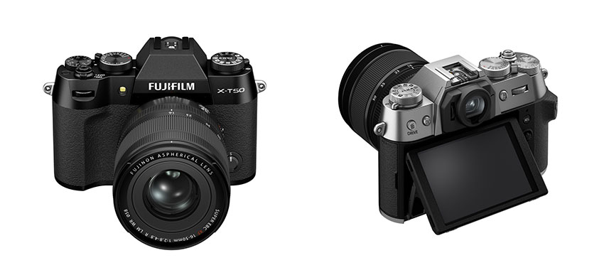 กล้องดิจิทัลมิเรอร์เลส X-T50 กล้องรุ่นใหม่ ถ่ายภาพสวยคมชัดและการออกแบบที่กะทัดรัดและน้ำหนักเบา ตัวกล้องหนักเพียง 438 กรัม ใช้เซนเซอร์ X-Trans™ CMOS 5 HR ความละเอียด 40.2 ล้านพิกเซล และระบบประมวลผลภาพความเร็วสูง "X-Processor 5" เสริมด้วยระบบป้องกันภาพสั่นไหวในตัว 5 แกน 7 สต็อป โดดเด่นด้วยโหมด "Film Simulation" ที่ช่วยเปลี่ยนโทนสีให้กับภาพได้ถึง 20 แบบ และหมุนเปลี่ยนสไตล์ได้ง่ายยิ่งขึ้นด้วย "Film Simulation Dial" จึงเหมาะในการถ่ายภาพทุกสถานการณ์ แถมเมื่อใช้กับเลนส์รุ่นใหม่ล่าสุดอย่าง FUJINON XF16-50mmF2.8-4.8 R LM WR ก็จะทำให้การถ่ายรูปสนุกและสะดวกมากยิ่งขึ้น