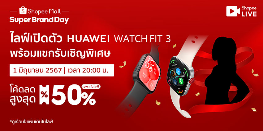 พบกับไลฟ์กับแขกรับเชิญสุดพิเศษ ในวันที่ 1 มิถุนายน 2567 เวลา 20.00 น. กับการขนทัพแก็ดเจ็ตหัวเว่ยมาลดแรงทั้ง หูฟัง สมาร์ทวอทช์ สมาร์ทโฟน แท็บเล็ต เริ่มต้นเพียง 99 บาท พร้อมโค้ดลดเพิ่มสูงสุด 50% เฉพาะในไลฟ์[1] ห้ามพลาด! ตั้งเวลารอดูพร้อมกันได้ที่นี่