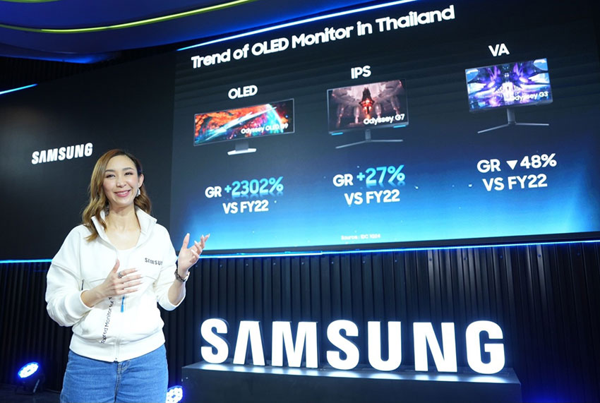 นางสาวอภิรดา พัวพรพงษ์ ผู้อำนวยการกลุ่มธุรกิจผลิตภัณฑ์จอภาพ บริษัท ไทยซัมซุง อิเลคโทรนิคส์ จำกัด เปิดเผยว่า “ซัมซุงมุ่งมั่นที่จะนำเสนอสิ่งที่ดีที่สุดแก่ผู้บริโภค เพื่อตอกย้ำความเป็นผู้นำในตลาดจอมอนิเตอร์พรีเมี่ยม โดยตั้งเป้าการเติบโตในตลาดจอมอนิเตอร์พรีเมี่ยมเพิ่มขึ้นในปี 2567 ผ่านกลยุทธ์เชิงรุกตลาดจอมอนิเตอร์พรีเมี่ยมที่ครอบคลุมทุก Segment ของจอ OLED ด้วยจุดแข็งด้านเทคโนโลยีจากซัมซุง ล่าสุดเปิดตัวจอ OLED เพิ่มขึ้น 2 รุ่น ได้แก่ Odyssey OLED G80SD และ G60SD ที่มาพร้อมการพัฒนาที่สมบูรณ์ยิ่งขึ้นด้วยเทคโนโลยีที่หลากหลายเฉพาะของซัมซุง เพื่อตอบโจทย์ความต้องการทุกประเภทของผู้ใช้ เนื่องจากจอมอนิเตอร์ได้กลายเป็นอุปกรณ์ที่มีความสำคัญอย่างยิ่งในการทำงานและการใช้ชีวิตประจำวันของคนรุ่นใหม่ในยุค Innovative Hybrid Lifestyle ที่มองหาตัวช่วยที่จะเพิ่มประสิทธิภาพในการใช้ชีวิต 3 ด้าน ได้แก่ การประหยัดเวลา (Time Saving), การเพิ่มประสิทธิภาพในการใช้ชีวิต (Life Efficiency) และการเชื่อมต่อแบบไร้รอยต่อ (Seamless Integration) เพื่อให้ทุกวันในการใช้ชีวิต การทำงาน การผ่อนคลาย สามารถเกิดขึ้นได้อย่างมีประสิทธิภาพ ไร้รอยต่อ และประหยัดเวลา นอกเหนือจากผลิตภัณฑ์ที่เราไม่เคยหยุดพัฒนาแล้ว เรามีทีมบริการหลังการขายที่จะดูแลทุกลูกค้าคนสำคัญของเราให้ได้พบกับประสบการณ์การใช้งานที่ดีที่สุด”