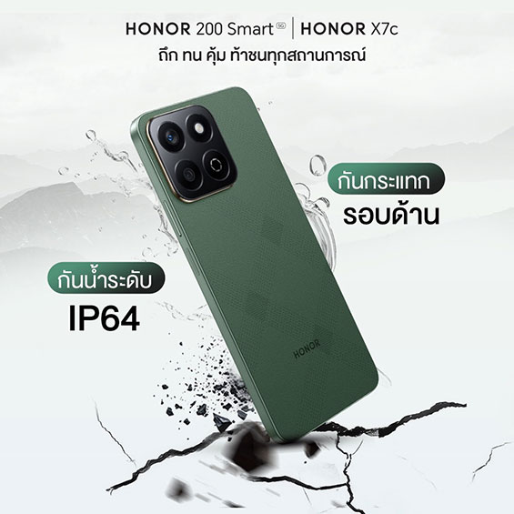 ออเนอร์ (HONOR) ผู้ให้บริการอุปกรณ์อัจฉริยะชั้นนำระดับโลก สร้างนิยามใหม่แห่งความคุ้มค่าและความทนทาน ด้วยการเปิดตัว HONOR X7c และ HONOR 200 Smart 5G อย่างเป็นทางการในประเทศไทย ชูจุดเด่นด้วยแบตเตอรี่ขนาดใหญ่ ความจุสูง 6000mAh และ 5200mAh รองรับการใช้งานได้ยาวนานตลอดวัน ตัวเครื่องแข็งแกร่งทนต่อการตกจากความสูง 1.5 เมตร พร้อมมาตรฐาน IP64 ป้องกันฝุ่นและน้ำ โดยสมาร์ตโฟนทั้งสองรุ่นมากับหน่วยความจำภายในแบบจัดเต็มขนาด 8+256GB และกล้อง AI คมชัดสูงสุด ช่วยเก็บทุกรายละเอียดในทุกภาพถ่าย ไม่ว่าจะใช้งานในชีวิตประจำวันหรือเก็บบันทึกช่วงเวลาสำคัญ โดย HONOR X7c เปิดตัวด้วยราคาเพียง 5,999 บาท และ HONOR 200 Smart 5G ราคา 6,999 บาท วางจำหน่ายแล้ววันนี้ พร้อมโปรโมชันพิเศษ Early Bird 28 พฤศจิกายน 2567 - 19 มกราคม 2568 รับฟรี HONOR Band 9 มูลค่า 1,699 บาท รีบจับจองสมาร์ตโฟนที่ให้มากกว่าความคุ้มค่าก่อนใคร และเปลี่ยนทุกวันของคุณให้ง่ายและสนุกยิ่งขึ้นกับ HONOR