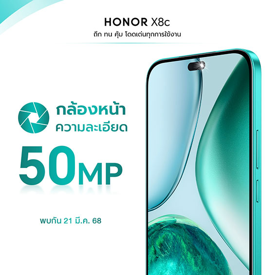 ออเนอร์ (HONOR) ผู้ให้บริการอุปกรณ์อัจฉริยะชั้นนำระดับโลก เตรียมเปิดตัวสมาร์ตโฟนรุ่นใหม่ล่าสุด HONOR X8c ที่มาพร้อมฟีเจอร์สุดล้ำ โดดเด่นทั้งด้านการถ่ายภาพ ความจุขนาดใหญ่ และดีไซน์สุดบางเบา ตอบโจทย์ทุกไลฟ์สไตล์ของผู้ใช้งาน สมาร์ตโฟนรุ่นนี้มาพร้อมกล้องหลังความละเอียดสูง 108MP พร้อม Ultra-clear Night Photograph รองรับการถ่ายภาพกลางคืนอย่างคมชัด และกล้องหน้าเซลฟี่ 50MP เสริมด้วย Selfie Light ช่วยให้การถ่ายเซลฟี่สวยงามในทุกสภาพแสง อีกทั้งยังมี AI Eraser เทคโนโลยีลบวัตถุที่ไม่ต้องการออกจากภาพได้ง่าย ๆ เพียงปลายนิ้ว ตลอดจนพื้นที่การจัดเก็บเต็มพิกัด ความจุขนาดใหญ่พิเศษ 512GB สำหรับ HONOR X8c จะเปิดราคาในวันที่ 21 มีนาคม 2568 โดยวางจำหน่ายผ่านช่องทางออนไลน์เท่านั้น พร้อมโปรโมชันพิเศษสำหรับลูกค้าที่สั่งซื้อช่วงเปิดตัว
